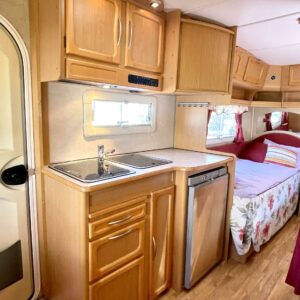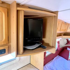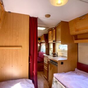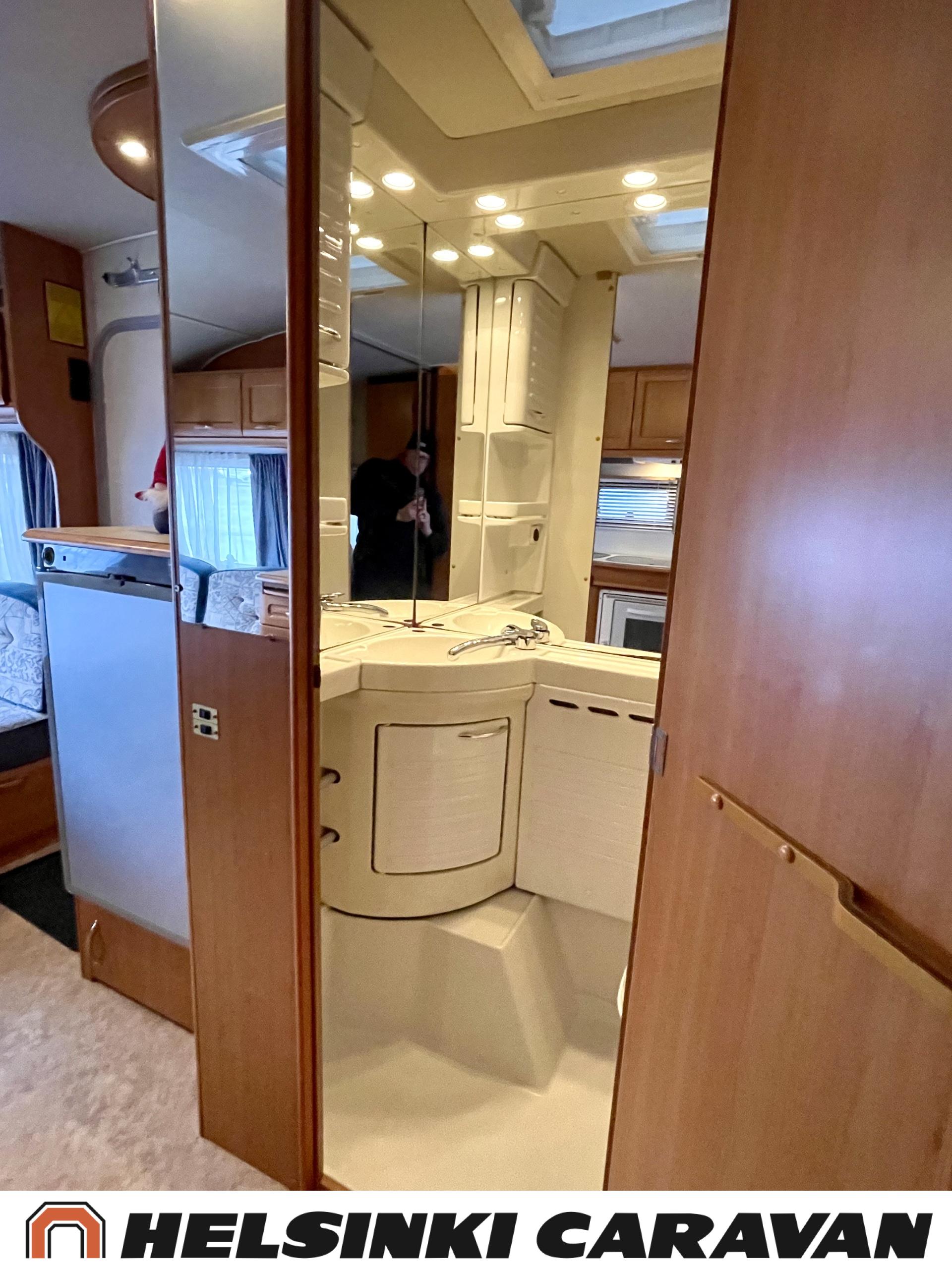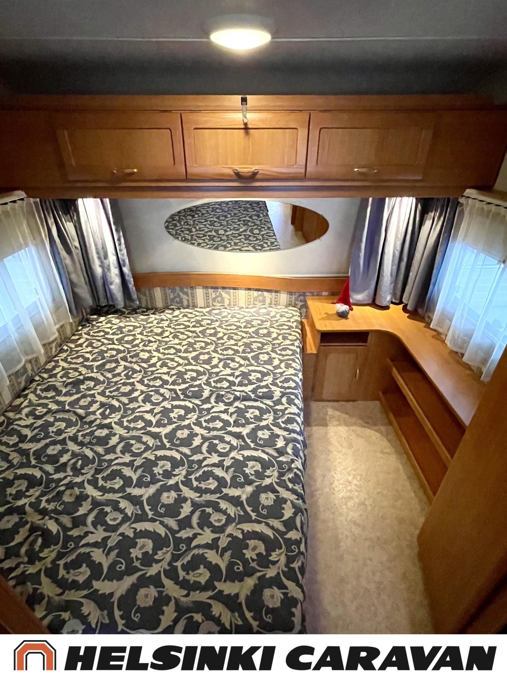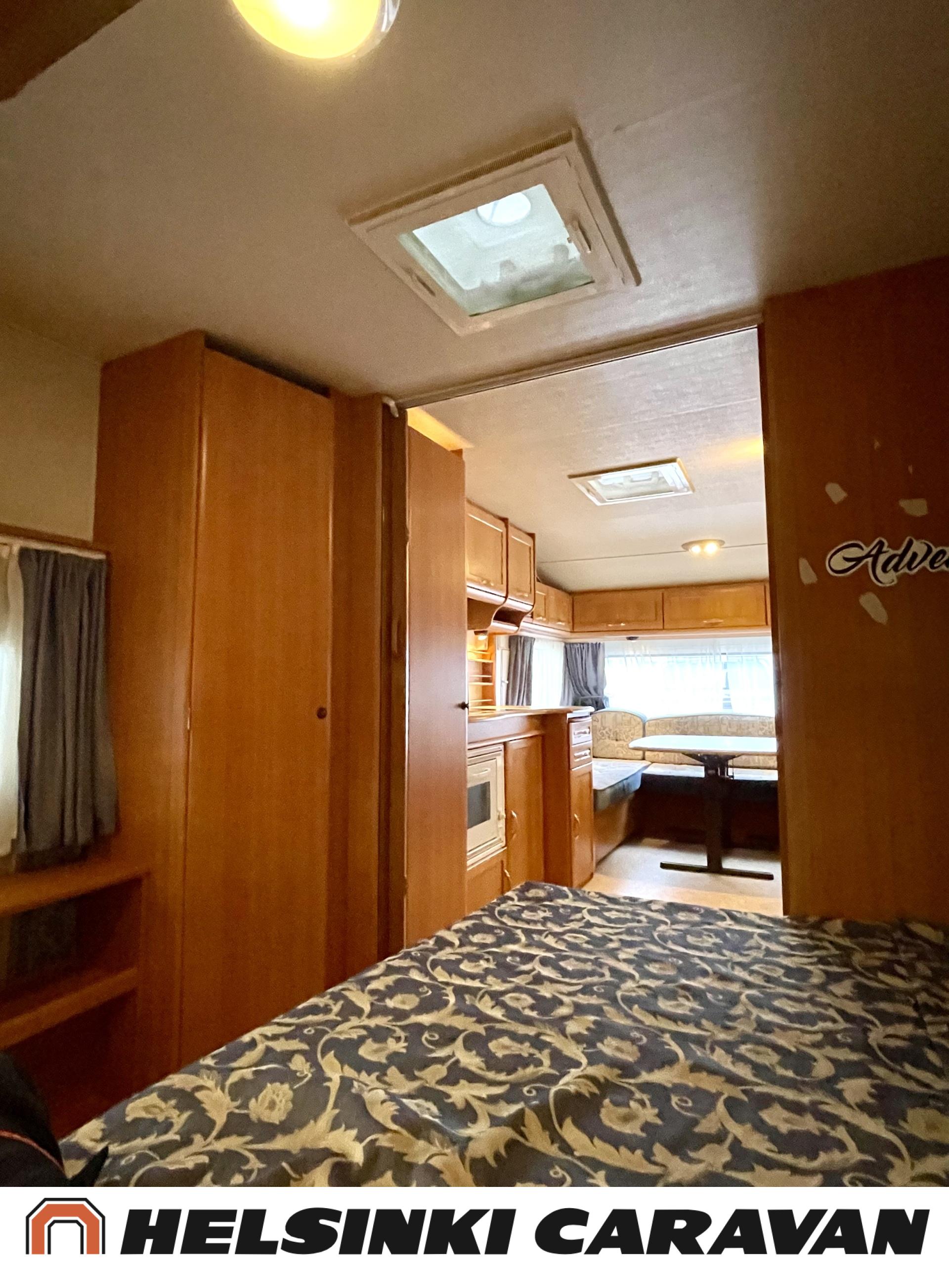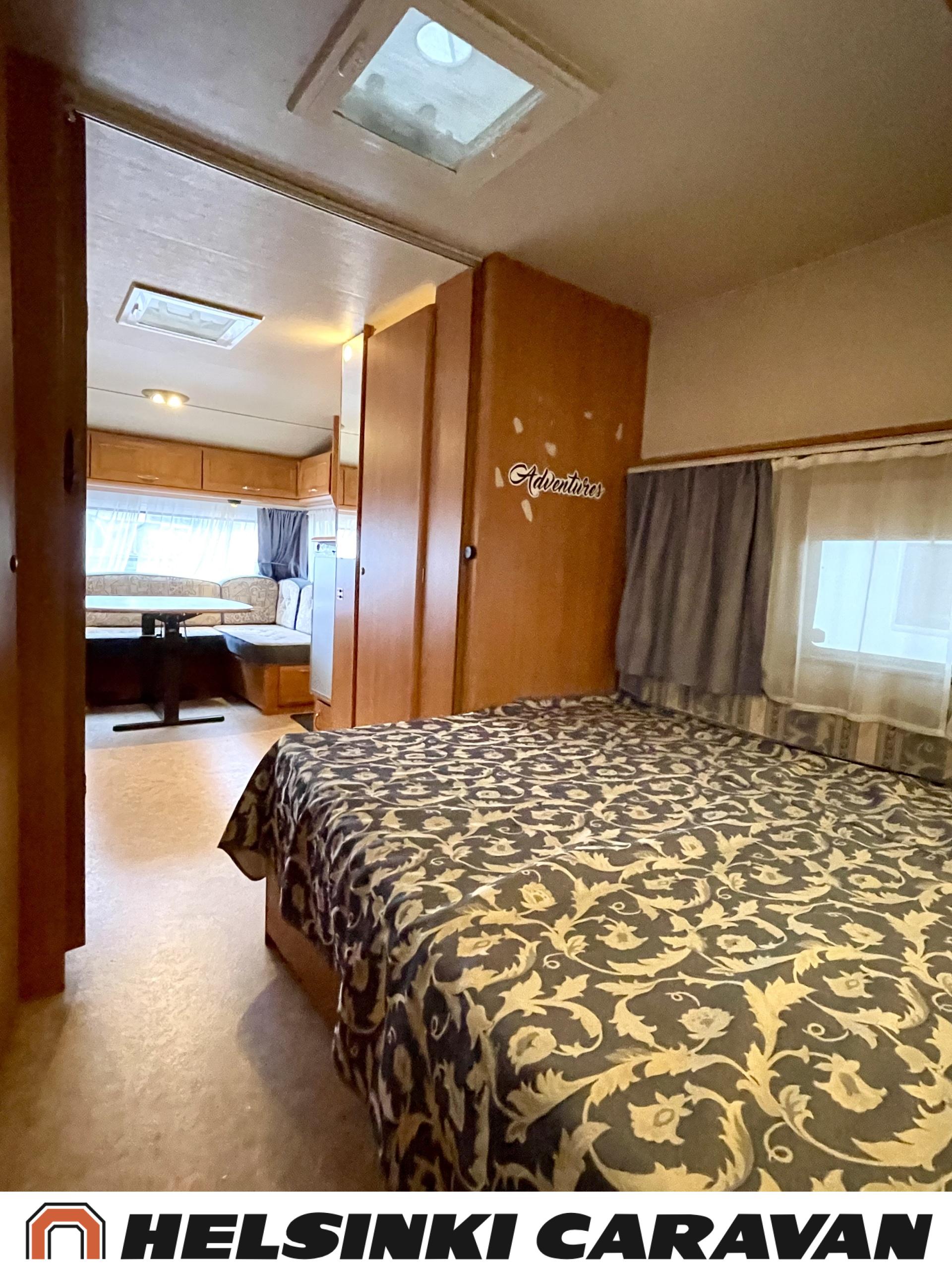 Alde, Separate beds, Hardwood decoration, Fridge, Cassette WC, Roof hatch, Stove, Hot water boiler, Fluid circulation heating, Bicycle rack, Radio, Electric heating cartridge, TV-antenni tai lautasantenni, Support legs, Cassette blinds, Floor heating, Freezer compartment, Sink