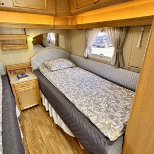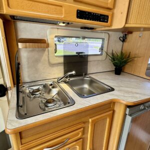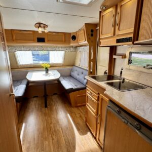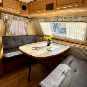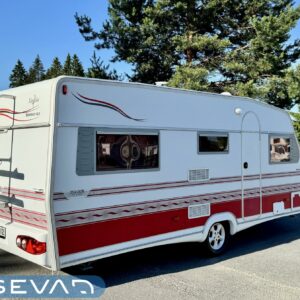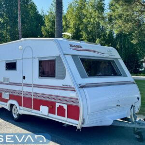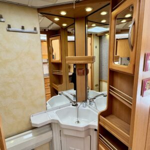 Bicycle rack, Lattialämmitys- nestekiertoinen, Separate beds, Solar panel, Alde- nestekiertoinen keskuslämmitys, Electric heating cartridge, Shower, Radio, liesituuletin, Leather interior, Freezer compartment, Sink, Stove, Roof hatch, Cassette WC, Cassette blinds, Fridge