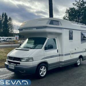 CD-soitin, Cab air conditioning, Fridge, Cassette WC, Cassette blinds, Roof hatch, Stove, Power steering, Freezer compartment, Sink, Radio, Shower, Electric steps, Vakionopeudensäädin, Sun shade, Engine heater, Trumatic, Special wheels, Roof railing/ladder, Central heating, Hot water boiler, Double bed, Bicycle rack, Electric windows, Power side mirrors, Towing hook, JP-huollot ok, Kesärenkaat