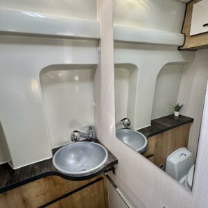 Two tyre sets, Cassette WC, Cassette blinds, Roof hatch, Fridge, Power steering, Shower, Sink, Trumatic, Lattialämmitys (sähkö), Electric steps, Sun shade, Pysäköintikamera, Vakionopeudensäädin, Towing hook, Engine heater, Radio, Solar panel, Cab air conditioning, Keskuslukitus: Kaukosäätöinen, Stove, Hot water boiler, Electric windows, Power side mirrors, Double bed, Freezer compartment