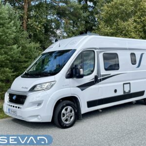 Truma, ABS brakes, Airbag, Solar panel, Special wheels, Insulated grey water tank, Fridge, Two tyre sets, Cassette WC, Cassette blinds, Roof hatch, Keskuslukitus: Kaukosäätöinen, Ignition interlock, Stove, Hot water boiler, Sun shade, Navigator, Power steering, Freezer compartment, Sink, Pysäköintikamera, Bicycle rack, Radio, Shower, Electric windows, Power side mirrors, Electric steps, Turbo, Vakionopeudensäädin, Ilmastointi (ohjaamo), Tupla-akut, ohjaamon kasettiverhot, Multimedialaite (sis. p-kamera, navi, Player, bluetooth, handsfree), Asuinosan hyttysovi/verho