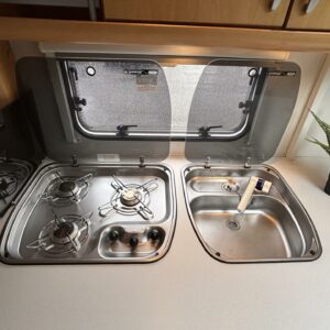 Sun shade, Stove, Electric heating cartridge, Roof hatch, Cassette blinds, Radio, Trumatic, Support legs, Shower, Double bed