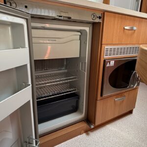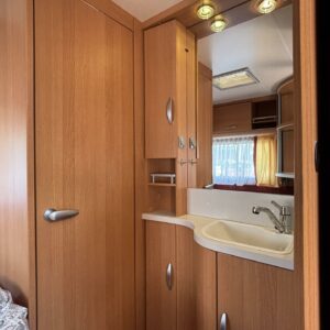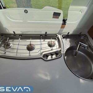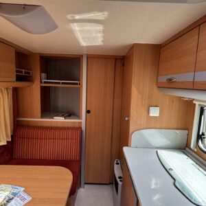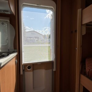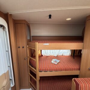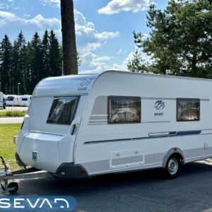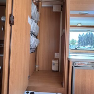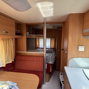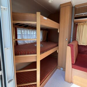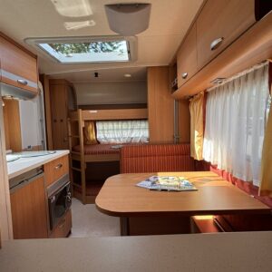 Fridge, Cassette WC, Cassette blinds, Roof hatch, Bunk bed, Stove, Hot water boiler, Sun shade, Freezer compartment, Double bed, Sink, Trumatic, Support legs, Kesärenkaat