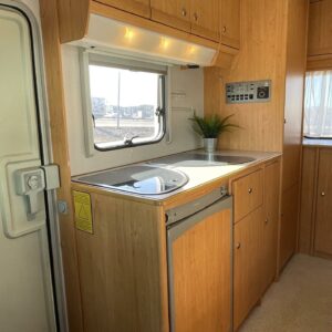 ABS brakes, CD-soitin, Fridge, Cassette WC, Cassette blinds, Roof hatch, Stove, Engine heater, Hot water boiler, Power steering, Freezer compartment, Sink, Bicycle rack, Shower, Electric windows, Power side mirrors, TV-antenni tai lautasantenni, Trumatic, Turbo, Invertteri