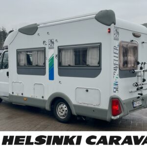 Service history, Fridge, Cassette WC, Roof hatch, Sun shade, Radio, Bicycle rack, Shower, Trumatic, Pysäköintikamera, Support legs