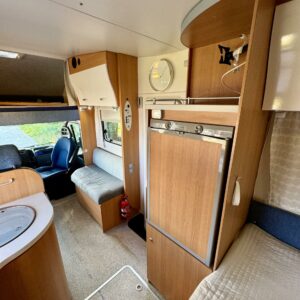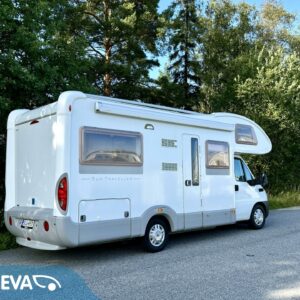 Fridge, Two tyre sets, Cassette WC, Cassette blinds, Roof hatch, Central heating, Ignition interlock, Stove, Hot water boiler, Sun shade, Power steering, Freezer compartment, Double bed, Radio, Shower, Electric heating cartridge, Trumatic, Double bottom, Turbo, Ilmastointi (ohjaamo), televisioteline, ohjaamon kasettiverhot