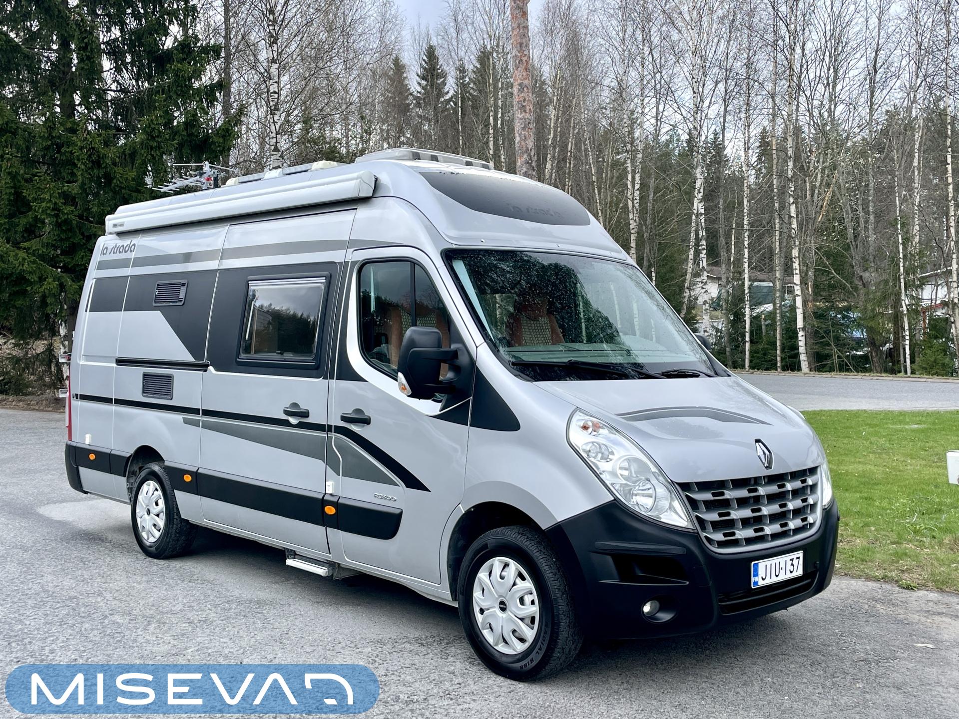 Trip computer, ABS brakes, Airbag, Cab air conditioning, Fridge, Two tyre sets, Cassette WC, Cassette blinds, Roof hatch, Central heating, Ignition interlock, Passenger area carpets, Stove, Engine heater, Traction control, Hot water boiler, Sun shade, Power steering, Freezer compartment, Double bed, Sink, Fuel-operated additional heater, Bicycle rack, Shower, Electric windows, Power side mirrors, Electric steps, Trumatic, Turbo, Towing hook, Solar panel, Ilmastointi: Manuaalinen, Keskuslukitus: Kaukosäätöinen, Radio, Vakionopeudensäädin