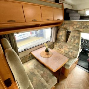 Primus Aquaflex nestekeskuslämpö, CD-soitin, Insulated grey water tank, Fridge, Cassette WC, Cassette blinds, Roof hatch, Central heating, Stove, Engine heater, Hot water boiler, Sun shade, Fluid circulation heating, Power steering, Freezer compartment, Sink, Bicycle rack, Electric heating cartridge, Electric steps, Turbo, harmaavesisäiliön lämmitys, Ilmastointi (asuintila)