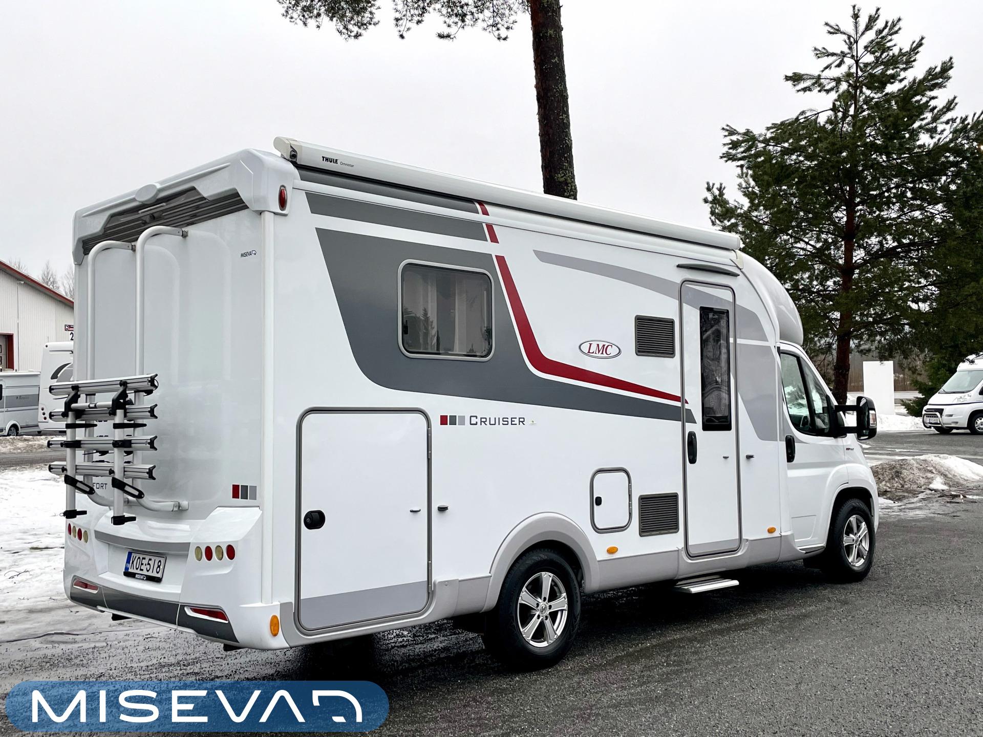 Two tyre sets, Sun shade, Airbag, ABS brakes, ESC system, Double bed, Cab air conditioning, Ilmastointi: Manuaalinen, Fridge, Cassette WC, Cassette blinds, Roof hatch, Keskuslukitus: Kaukosäätöinen, Ignition interlock, Stove, Traction control, Navigator, Power steering, Freezer compartment, Radio, Shower, Electric windows, Power side mirrors, Electric steps, TV-antenni tai lautasantenni, Turbo, Vakionopeudensäädin, Pysäköintikamera, Sink, Hot water boiler, Insulated grey water tank, Special wheels, Bicycle rack, Trumatic