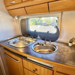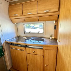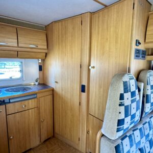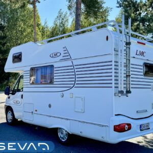 Two tyre sets, Trumatic- ilmapuhalluslämmitys, Rear kitchen, Poikittainen parivuode, Sun shade, Roof railing/ladder, Electric steps, Double bottom, Radio, Fridge, Cassette blinds, Cassette WC, Roof hatch, Stove, Sink, Shower