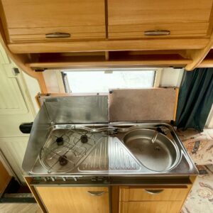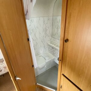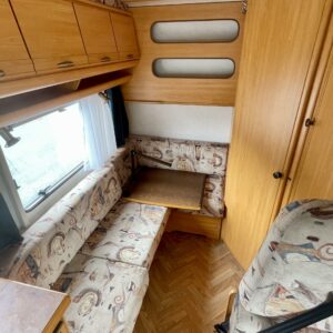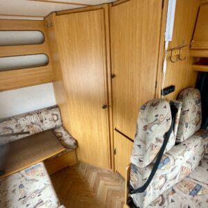 Fridge, Cassette WC, Stove, Hot water boiler, Sun shade, Fluid circulation heating, Power steering, Double bed, Electric heating cartridge, Turbo