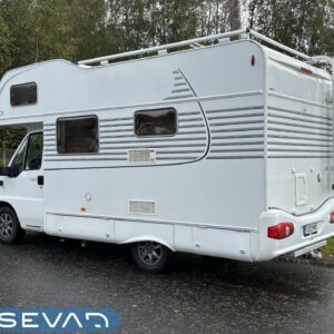 Cassette WC, Cassette blinds, Roof hatch, Ignition interlock, Hot water boiler, Fridge, Stove, Traction control, Sun shade, Power steering, Freezer compartment, Double bed, Sink, Electric windows, Shower, Radio, Pysäköintikamera, Fuel-operated additional heater, Power side mirrors, Trumatic, Turbo, Solar panel, Roof railing/ladder, Ilmastointi (asuintila)