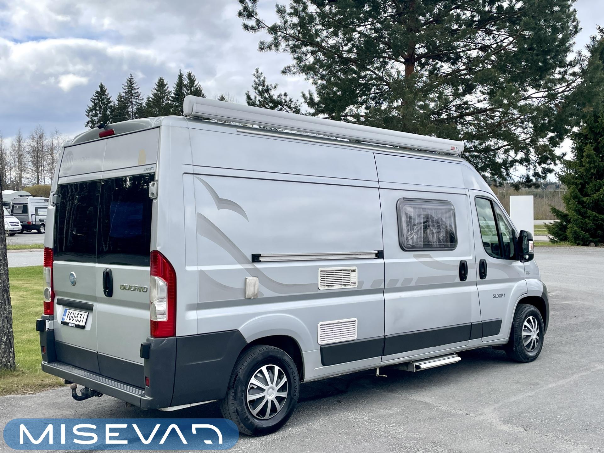 Towing hook, Peruutuskamera: Kamera takana, Ilmastointi: Manuaalinen, Two tyre sets, Webasto / Eber, Trumatic- ilmapuhalluslämmitys, Electric heating cartridge, Shower, Peruutuskamera, Ohjaamoilmastointi- manuaalinen, Sun shade, Solar panel, Radio, Cassette WC, Roof hatch, Stove, Sink, Double bed, Electric windows, Fridge, Airbag, ABS brakes, Power steering, Freezer compartment, Electric steps