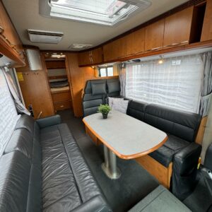 Solar panel, Cab air conditioning, Fridge, Cassette blinds, Roof hatch, Central heating, Stove, Hot water boiler, Sun shade, Fluid circulation heating, Power steering, Freezer compartment, Double bed, Sink, Pysäköintikamera, Radio, Shower, Electric heating cartridge, Power side mirrors, Electric steps, Towing hook, Alde, Ilmastointi (asuintila), Invertteri, kaasun ulosotto, suihkun ulosotto, Asuinosan hyttysovi/verho