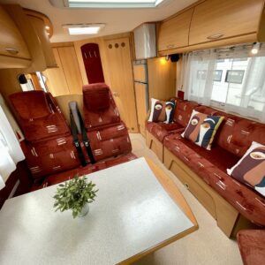 Truma, Electric heating cartridge, Special wheels, Insulated grey water tank, Fridge, Gas oven, Cassette WC, Cassette blinds, Roof hatch, Stove, Hot water boiler, Power steering, Freezer compartment, Sink, Radio, Shower, Double bottom, Turbo, Ilmastointi (ohjaamo), jenkkijääkaappi, Sun shade, Bicycle rack