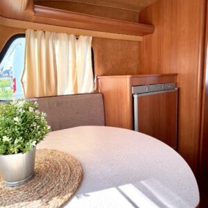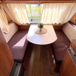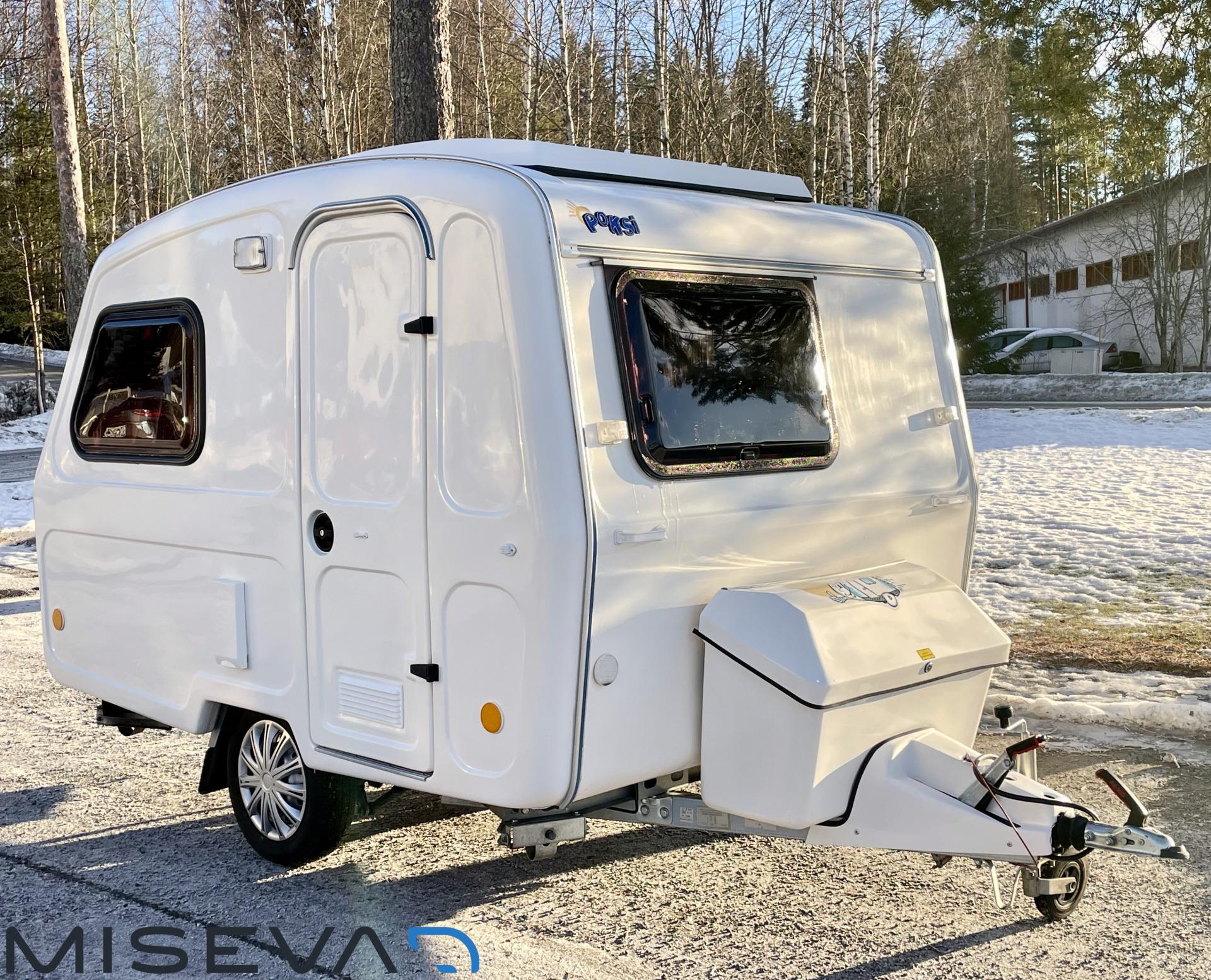 Truma, Fridge, Cassette WC, Roof hatch, Floor heating, Stove, Freezer compartment, Support legs, Lattialämmitys (sähkö)