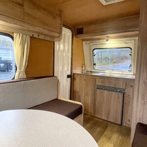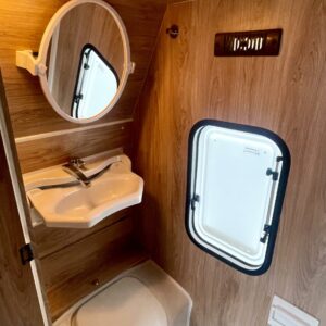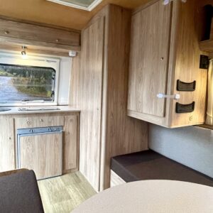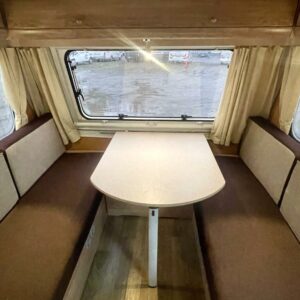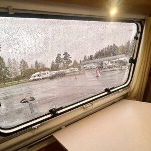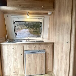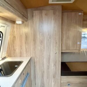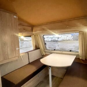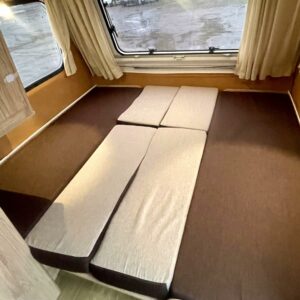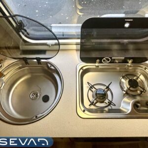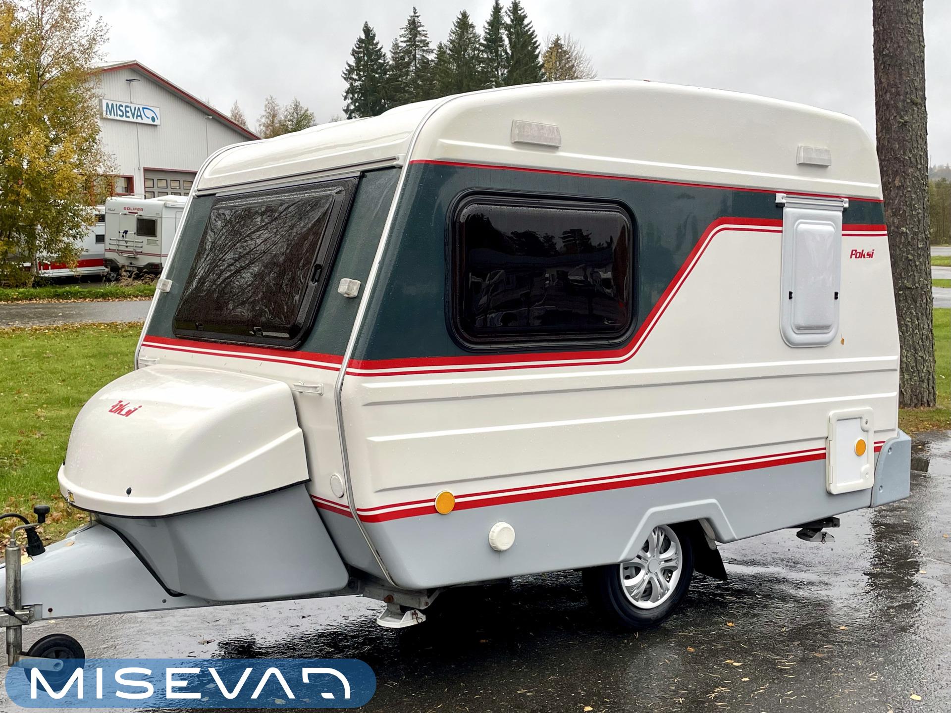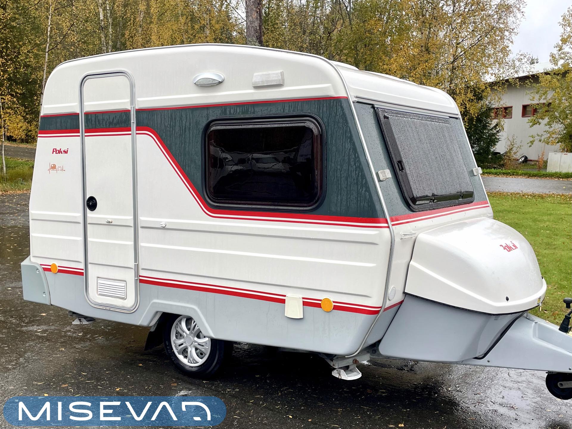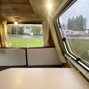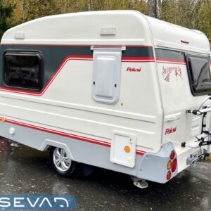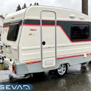 Floor heating, Lattialämmitys (sähkö), Trumatic, Cassette blinds, Cassette WC, Roof hatch, Stove, Freezer compartment, Double bed, Sink, Bicycle rack, Rear kitchen, Support legs
