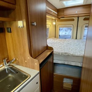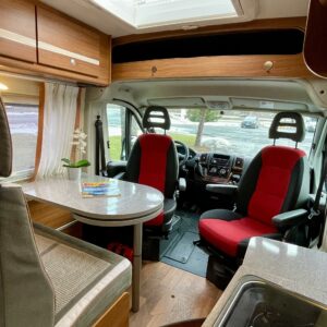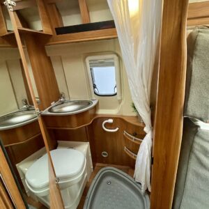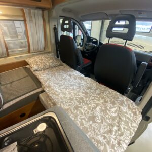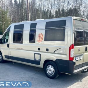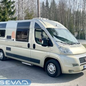 Towing hook, Vakionopeudensäädin: Perinteinen, Lohkolämmitin / moottorilämmitin, Two tyre sets, Trumatic- ilmapuhalluslämmitys, Electric steps, Electric heating cartridge, Poikittainen parivuode, Invertteri, Lisäpatjasarja, Airbag, ESC system, Trip computer, Cab air conditioning, Fridge, Cassette WC, Cassette blinds, Roof hatch, Hot water boiler, Stove, Power steering, Freezer compartment, Double bed, Pysäköintikamera, Radio, Shower, Electric windows, Power side mirrors, Asuinosan hyttysovi/verho, Kesärenkaat, Talvirenkaat(nasta)