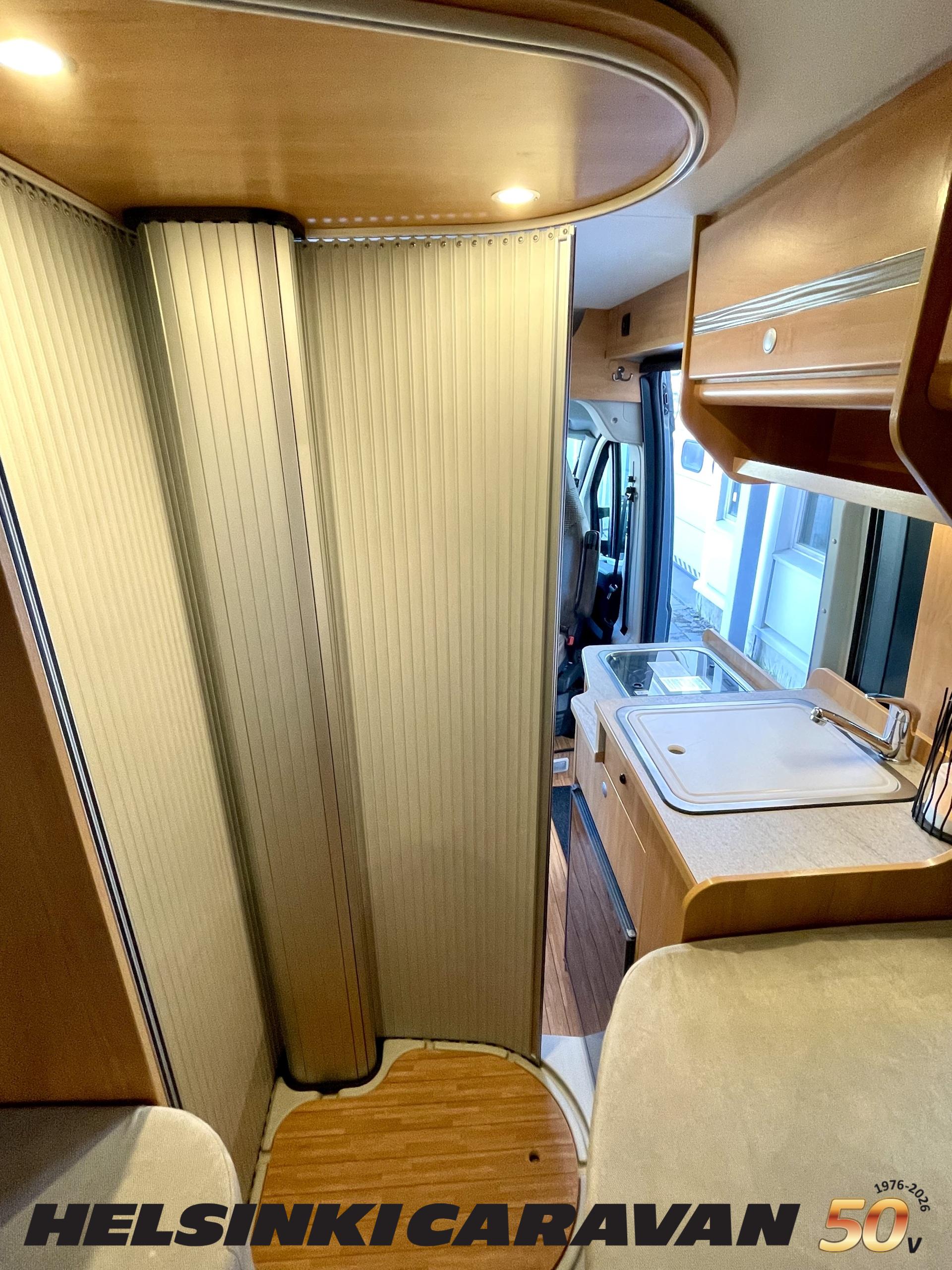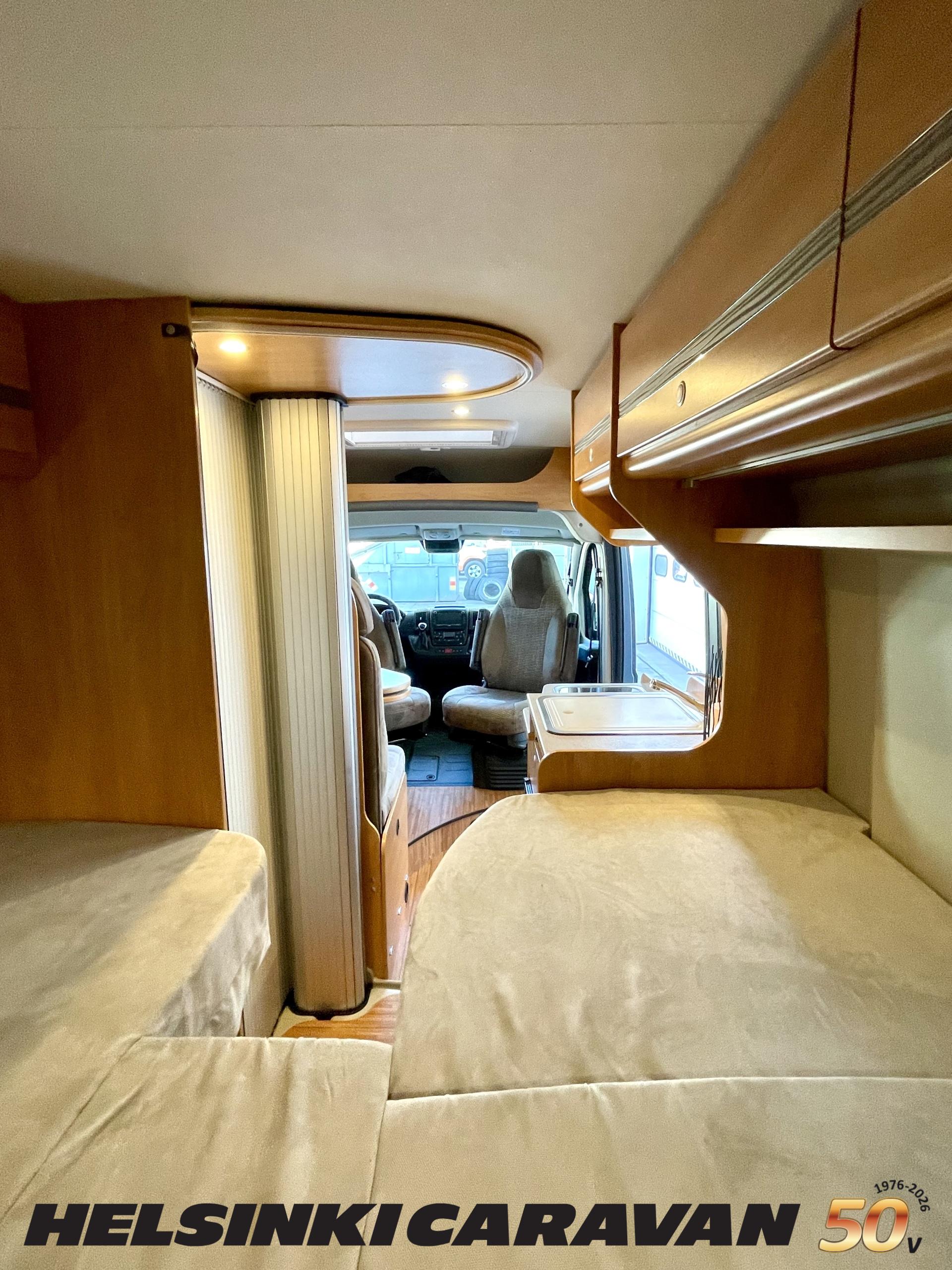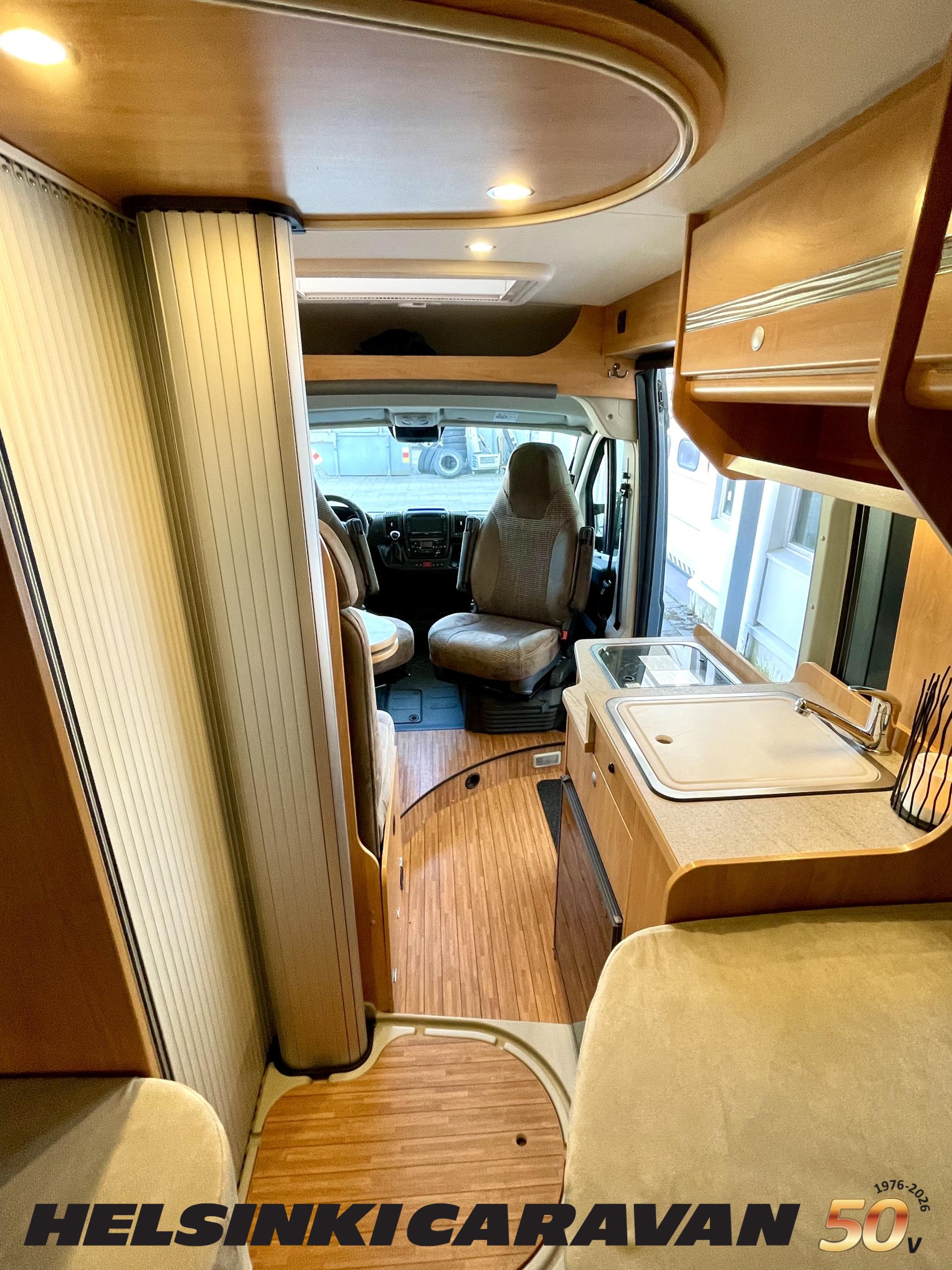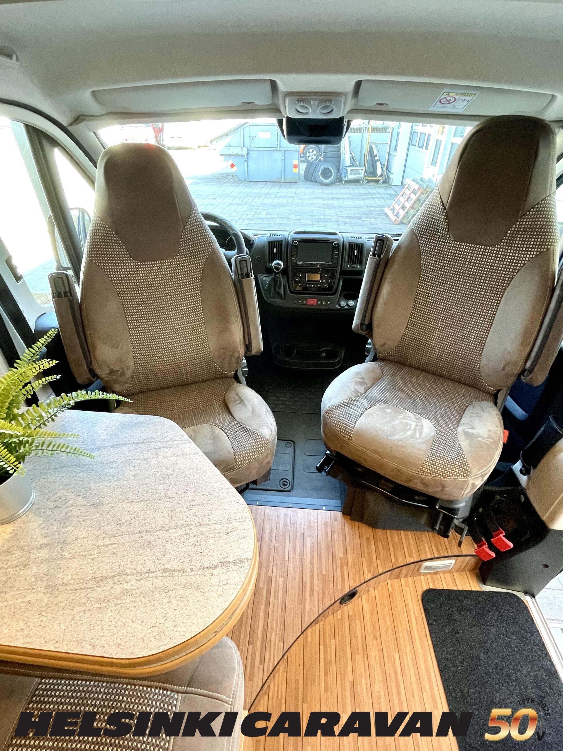 ABS brakes, Airbag, Trip computer, Solar panel, Special wheels, Service history, Cab air conditioning, Fridge, Cassette WC, Cassette blinds, Roof hatch, Keskuslukitus: Avaimella, Ignition interlock, Stove, Engine heater, Traction control, Hot water boiler, Sun shade, Navigator, Power steering, Freezer compartment, Sink, Pysäköintikamera, Radio, Shower, Electric windows, Electric heating cartridge, Power side mirrors, Electric steps, Trumatic, Turbo, Towing hook, Vakionopeudensäädin, Microwave oven, Separate beds, Truma, Ilmastointi (ohjaamo), Vakionopeuden säädin, JP-huollot ok, Huoltokirja ok, Kesärenkaat, 1 x kevytmet.vanteet, ohjaamon kasettiverhot, Peruutuskamera, Asuinosan hyttysovi/verho, liukuoven softlock, Insulated grey water tank, ESC system, Äänentoistojärjestelmä, Ilmastointi: Automaattinen