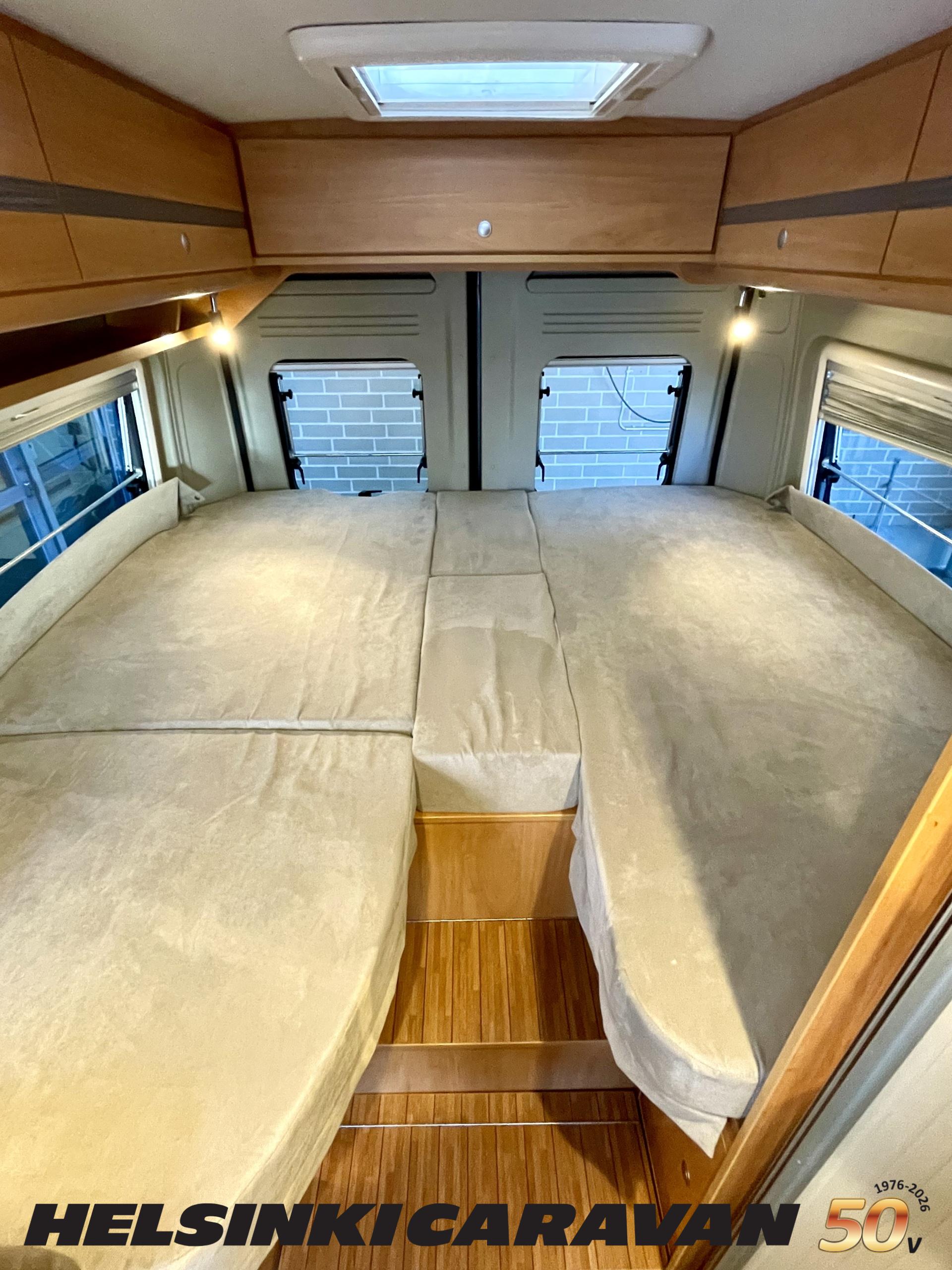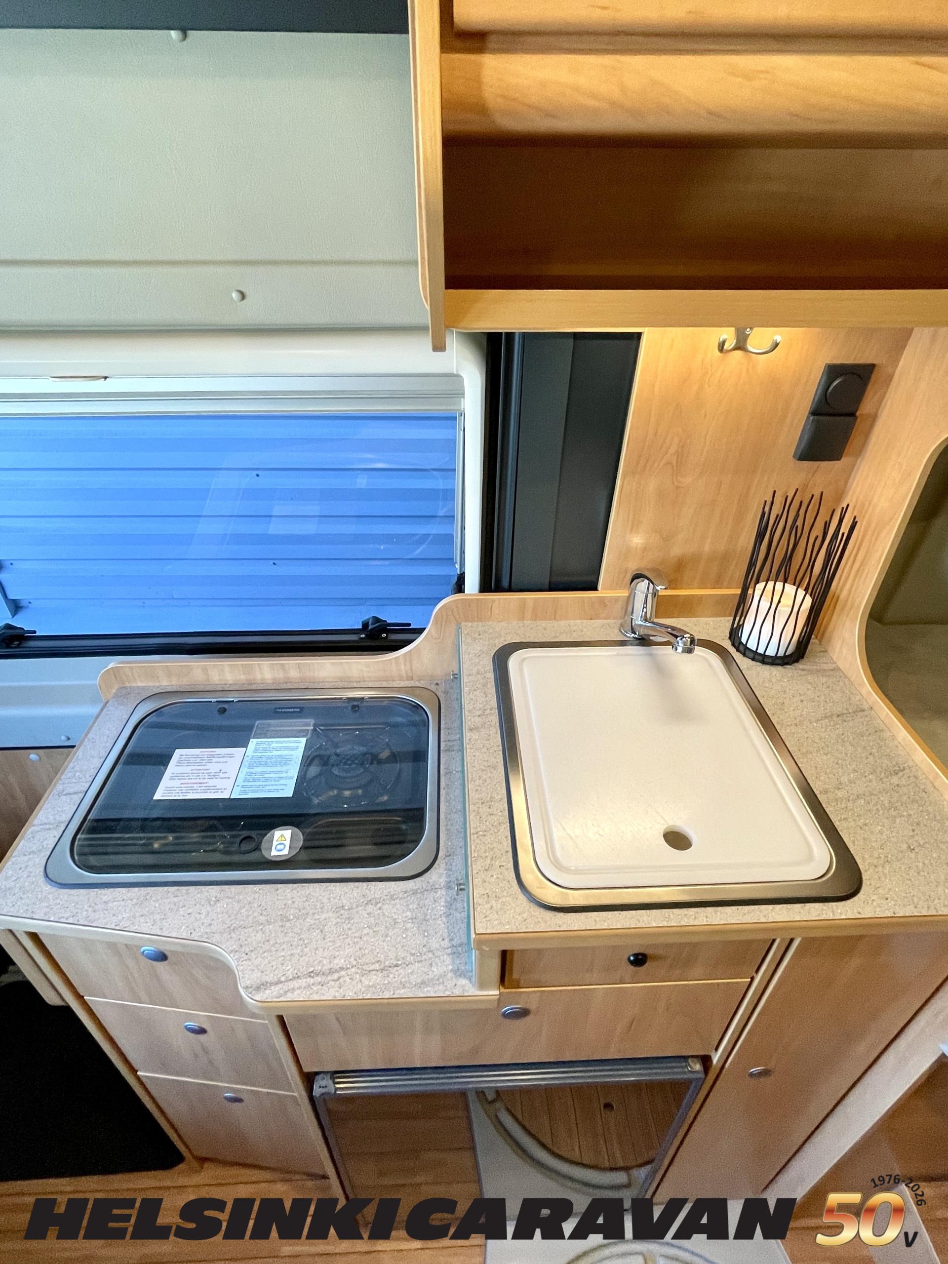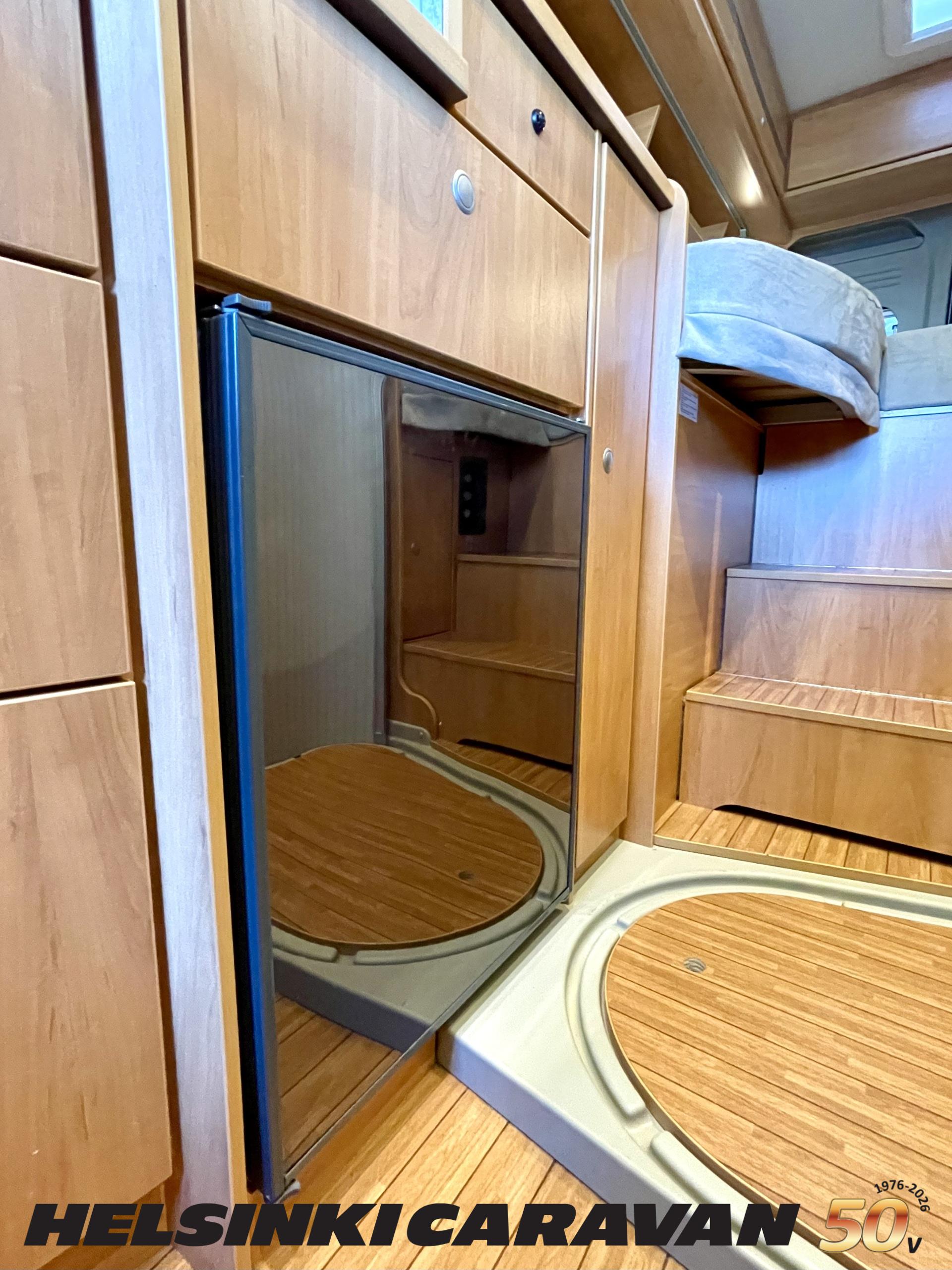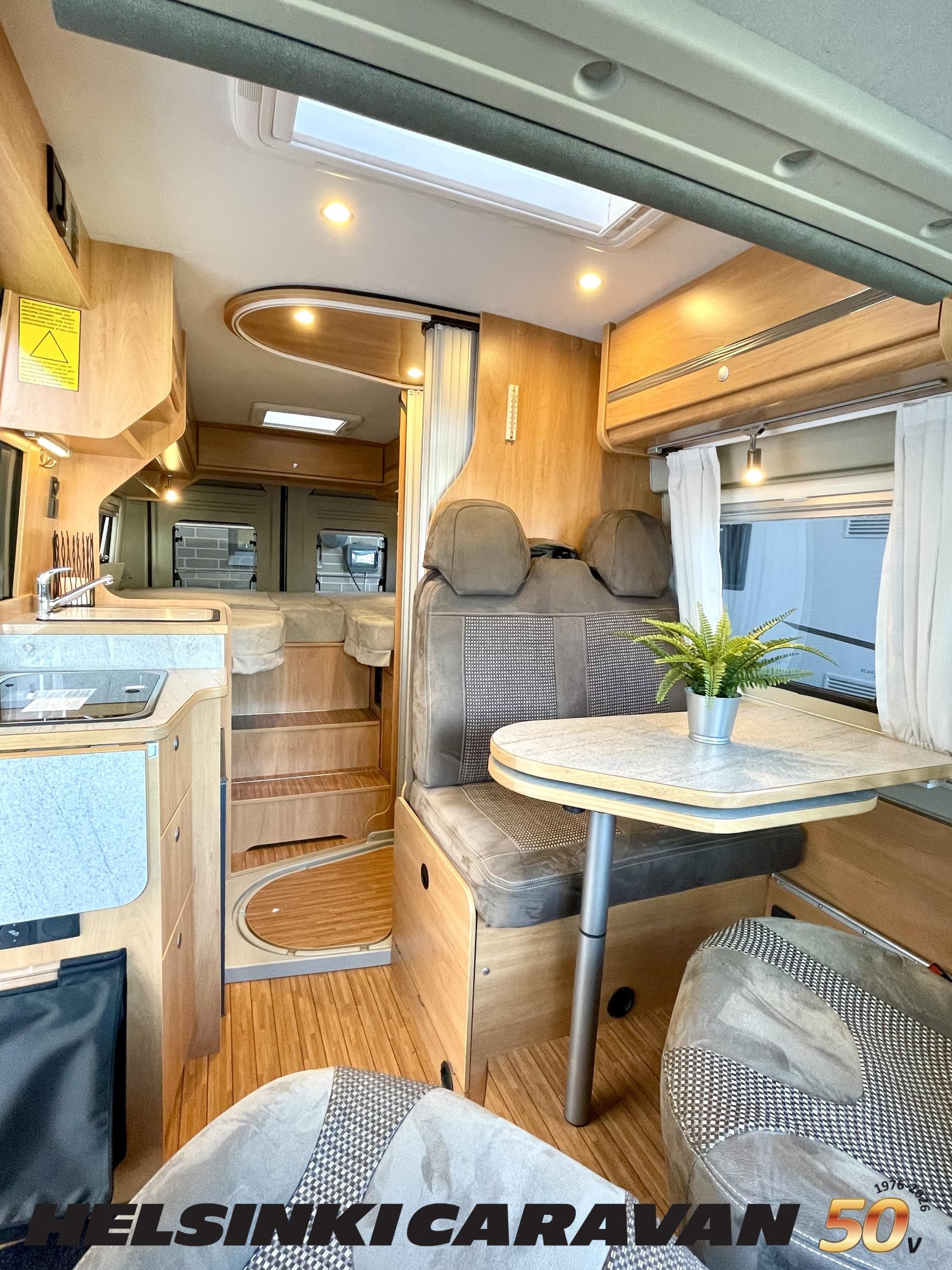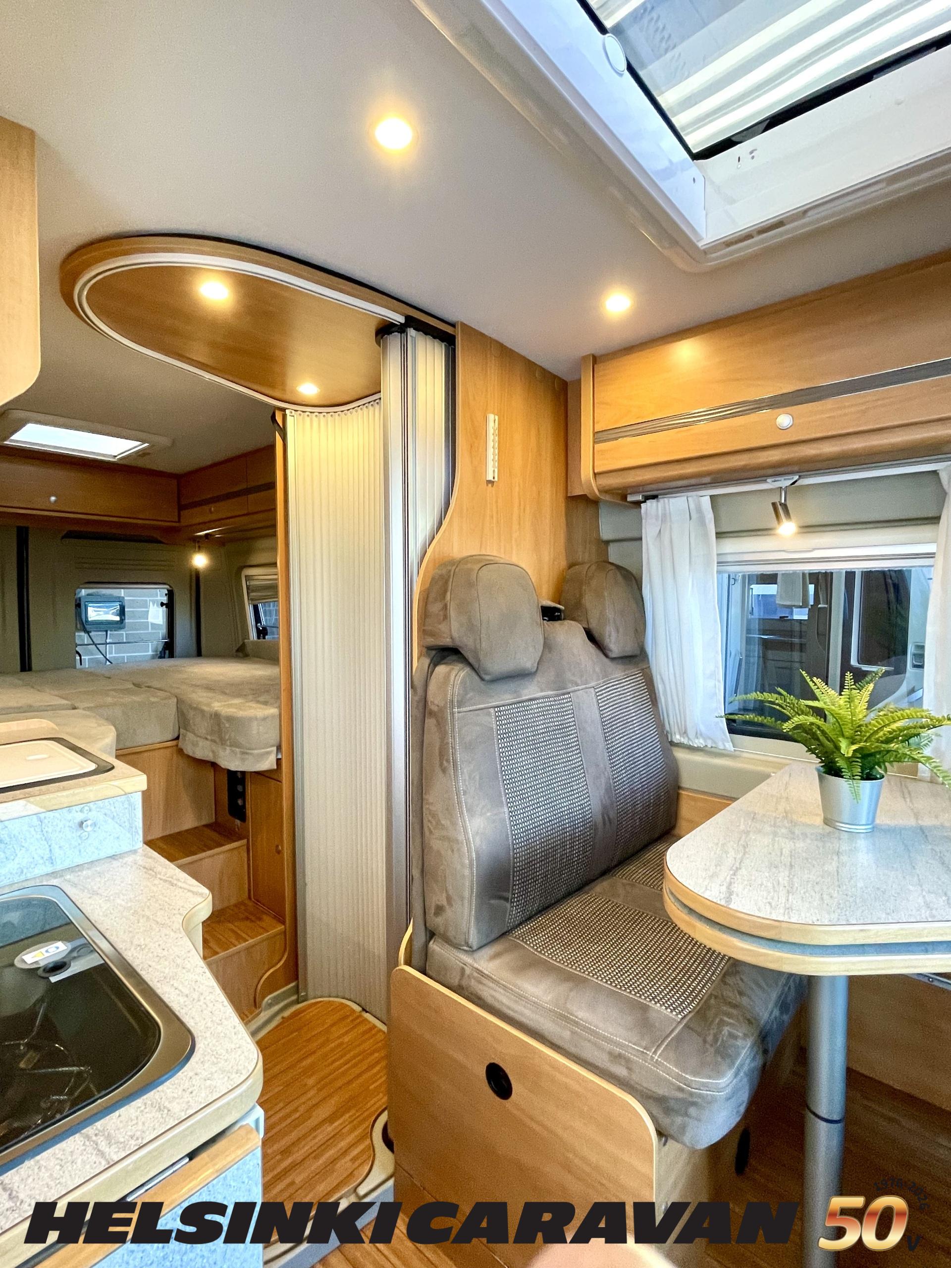 ABS brakes, Airbag, Trip computer, Solar panel, Special wheels, Service history, Cab air conditioning, Fridge, Cassette WC, Cassette blinds, Roof hatch, Keskuslukitus: Avaimella, Ignition interlock, Stove, Engine heater, Traction control, Hot water boiler, Sun shade, Navigator, Power steering, Freezer compartment, Sink, Pysäköintikamera, Radio, Shower, Electric windows, Electric heating cartridge, Power side mirrors, Electric steps, Trumatic, Turbo, Towing hook, Vakionopeudensäädin, Microwave oven, Separate beds, Truma, Ilmastointi (ohjaamo), Vakionopeuden säädin, JP-huollot ok, Huoltokirja ok, Kesärenkaat, 1 x kevytmet.vanteet, ohjaamon kasettiverhot, Peruutuskamera, Asuinosan hyttysovi/verho, liukuoven softlock, Insulated grey water tank, ESC system, Äänentoistojärjestelmä, Ilmastointi: Automaattinen