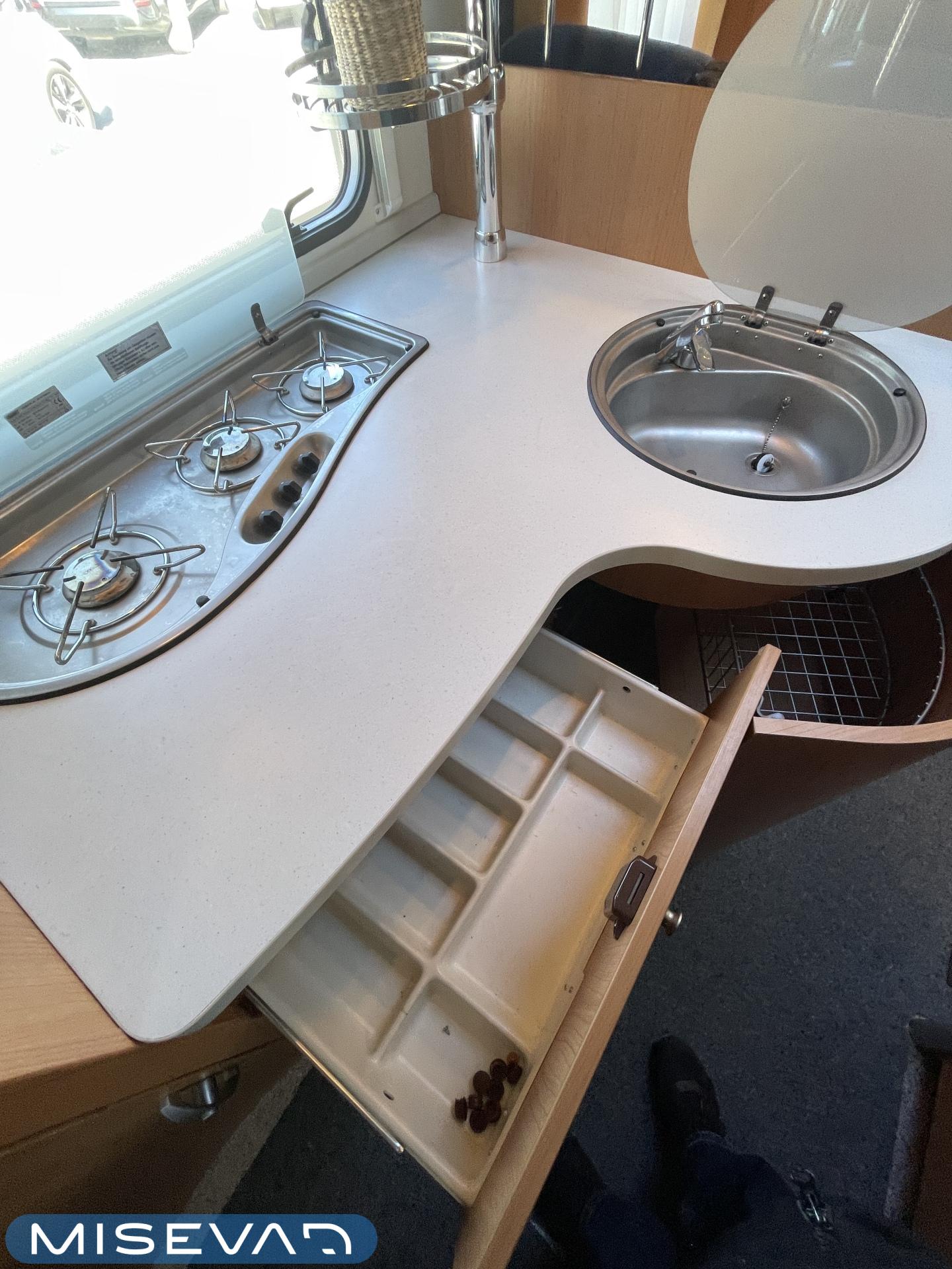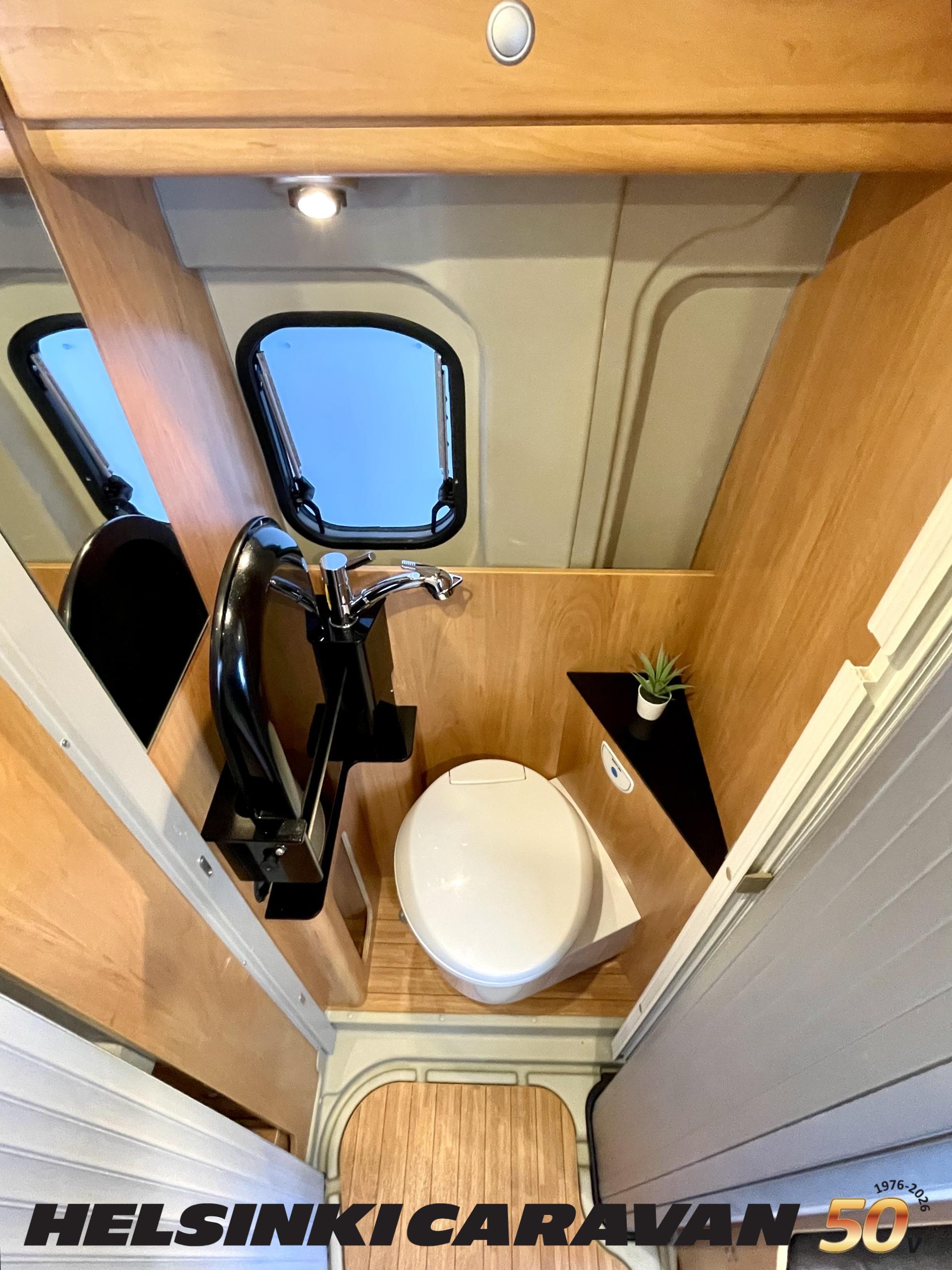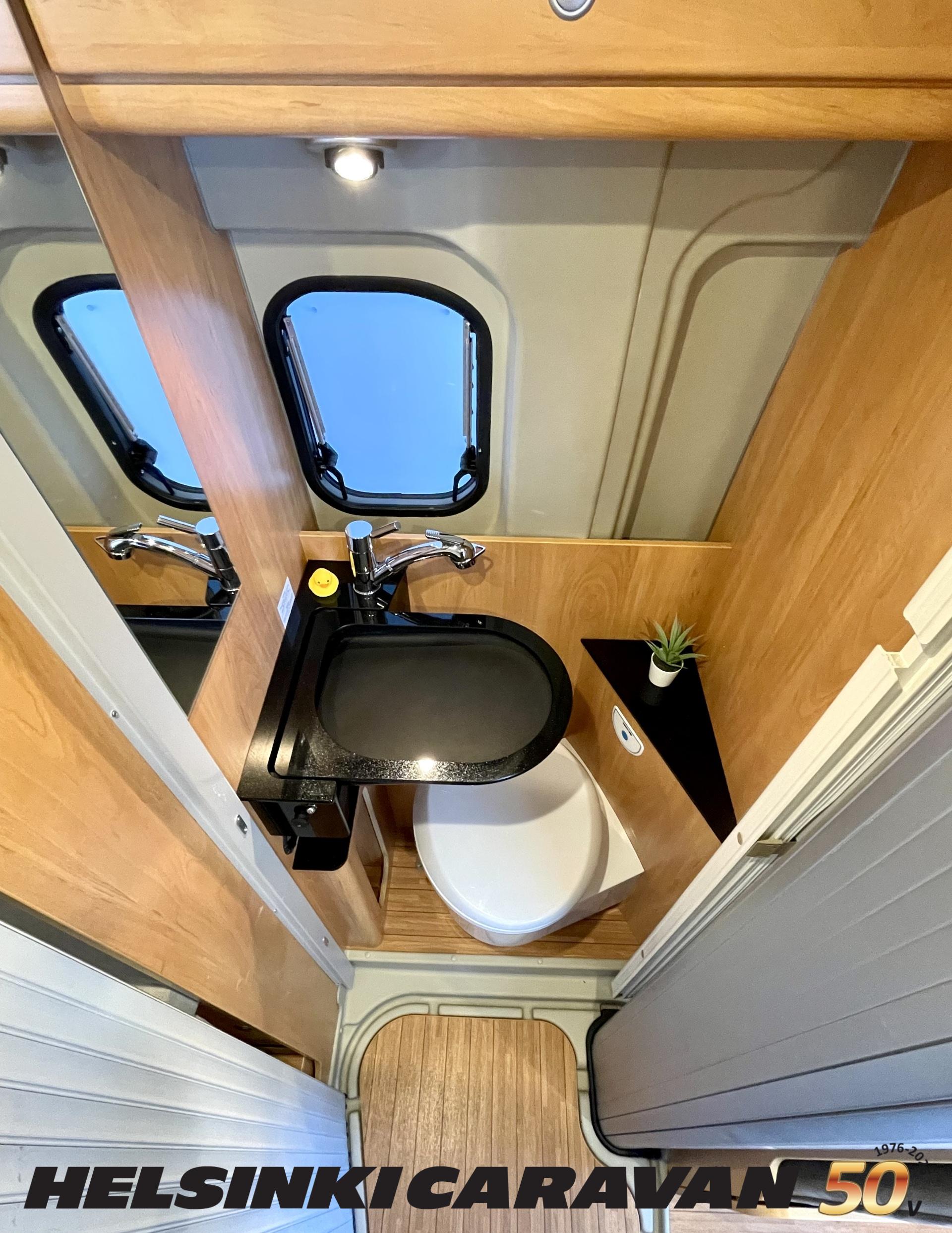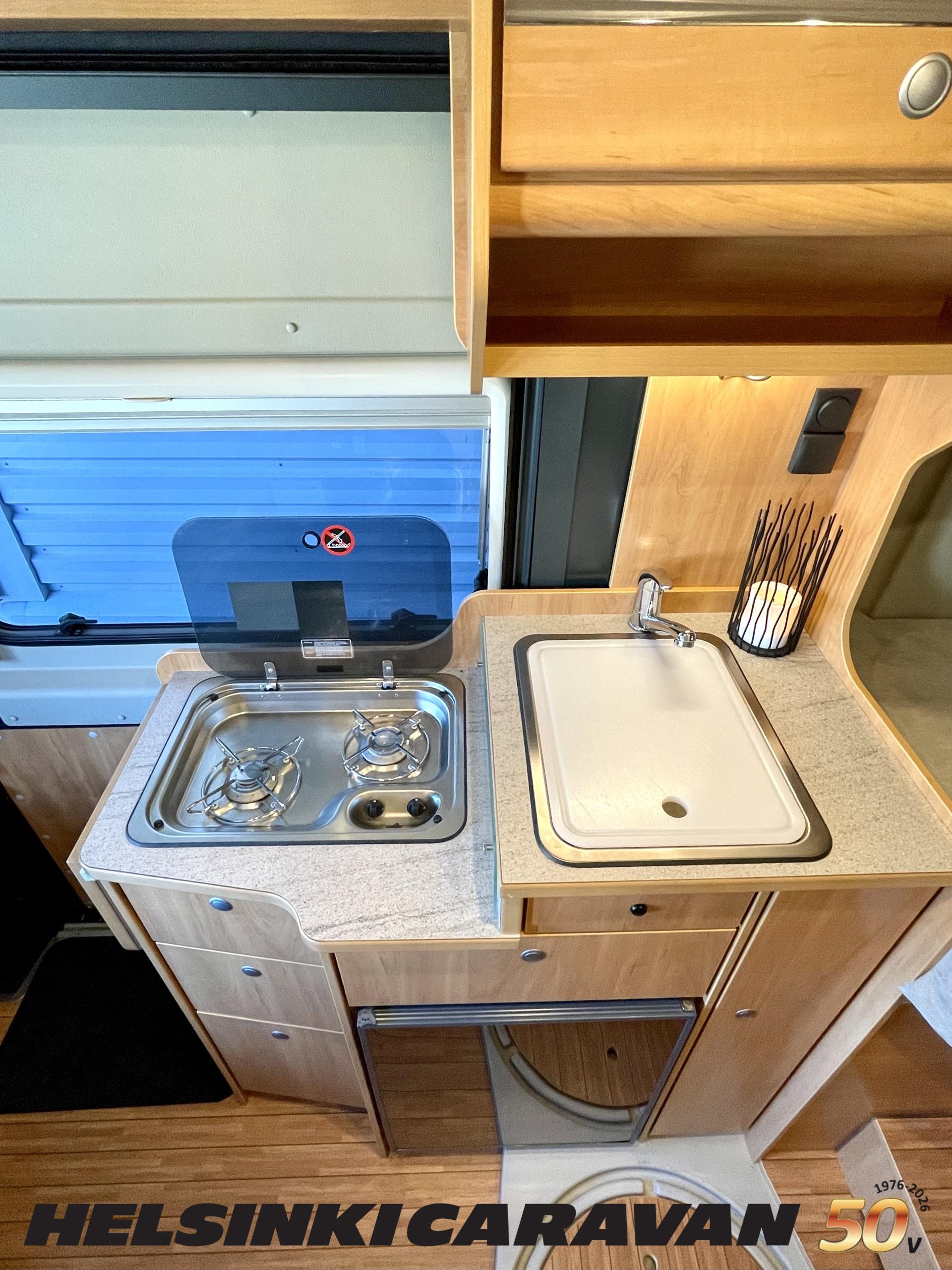 ABS brakes, Airbag, Trip computer, Solar panel, Special wheels, Service history, Cab air conditioning, Fridge, Cassette WC, Cassette blinds, Roof hatch, Keskuslukitus: Avaimella, Ignition interlock, Stove, Engine heater, Traction control, Hot water boiler, Sun shade, Navigator, Power steering, Freezer compartment, Sink, Pysäköintikamera, Radio, Shower, Electric windows, Electric heating cartridge, Power side mirrors, Electric steps, Trumatic, Turbo, Towing hook, Vakionopeudensäädin, Microwave oven, Separate beds, Truma, Ilmastointi (ohjaamo), Vakionopeuden säädin, JP-huollot ok, Huoltokirja ok, Kesärenkaat, 1 x kevytmet.vanteet, ohjaamon kasettiverhot, Peruutuskamera, Asuinosan hyttysovi/verho, liukuoven softlock, Insulated grey water tank, ESC system, Äänentoistojärjestelmä, Ilmastointi: Automaattinen