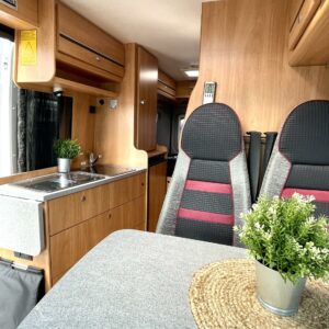 Truma, ABS brakes, Airbag, Special wheels, Fridge, Two tyre sets, Cassette WC, Cassette blinds, Roof hatch, Keskuslukitus: Kaukosäätöinen, Stove, Engine heater, Hot water boiler, Sun shade, Power steering, Freezer compartment, Double bed, Sink, Pysäköintikamera, Bicycle rack, Radio, Shower, Electric windows, Power side mirrors, Electric steps, Turbo, Vakionopeudensäädin, Towing hook, Ilmastointi (ohjaamo), ohjaamon kasettiverhot, Asuinosan hyttysovi/verho
