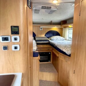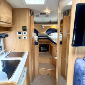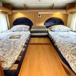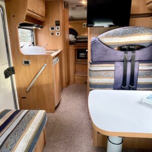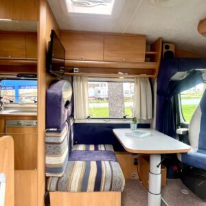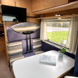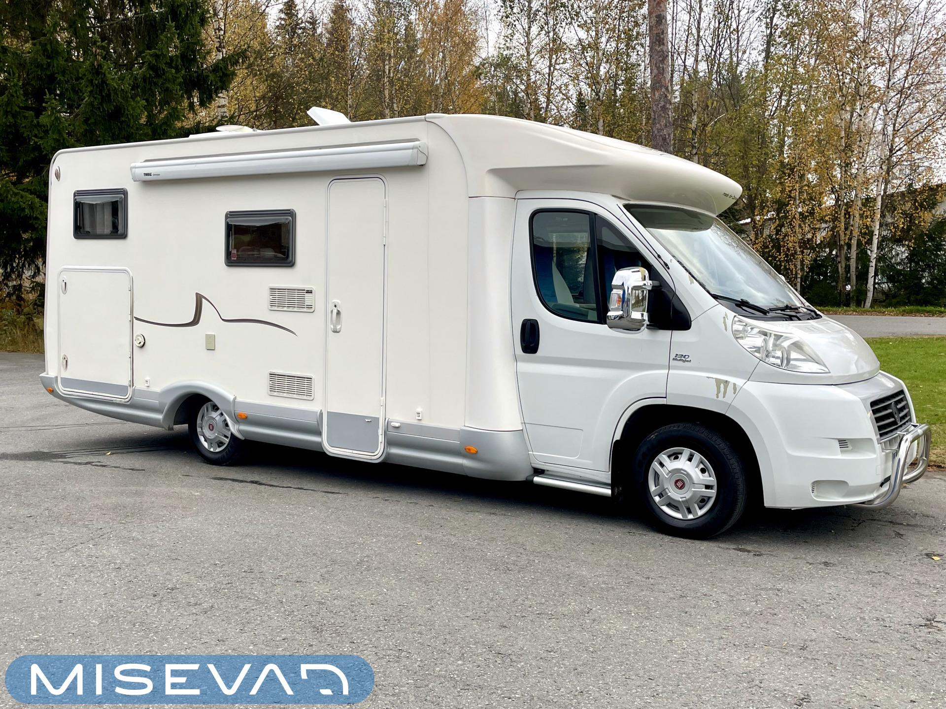 ABS brakes, Airbag, Floor heating, Lattialämmitys (sähkö), Trumatic, Electric heating cartridge, Radio, Cassette blinds, Cassette WC, Two tyre sets, Roof hatch, Cab air conditioning, Sun shade, Bicycle rack, Vakionopeudensäädin, Gas oven, Service history, Separate beds, Stove, Hot water boiler, Power steering, Freezer compartment, Sink, Shower, Electric windows