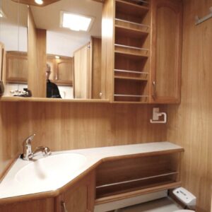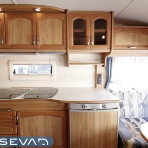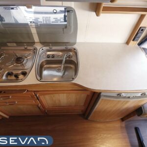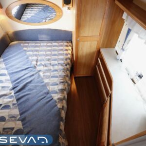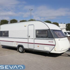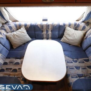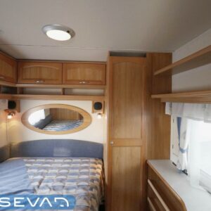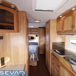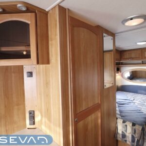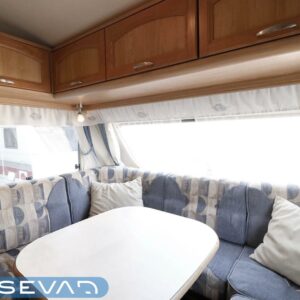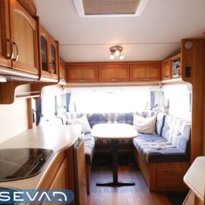Alde, Floor heating, Fluid circulation heating, Cassette WC, Insulated grey water tank, Electric heating cartridge, TV-antenni tai lautasantenni, Special wheels, Fridge, Hot water boiler, Freezer compartment, Double bed, Radio, Cassette blinds, Roof hatch