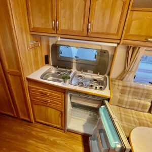 Alde, Fridge, Cassette WC, Cassette blinds, Roof hatch, Floor heating, Stove, Hot water boiler, Sun shade, Fluid circulation heating, Freezer compartment, Double bed, Sink, Electric heating cartridge, TV-antenni tai lautasantenni, Support legs, Lattialämmitys (nestekierto), CD-soitin, Special wheels, kaasun ulosotto, sähkön ulosotto