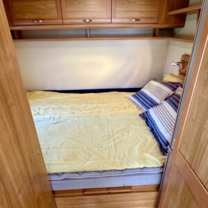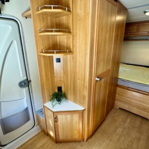 Solar panel, Cassette blinds, Cassette WC, Fridge, Roof hatch, Floor heating, Stove, Hot water boiler, Fluid circulation heating, Freezer compartment, Double bed, Sink, Support legs, Electric heating cartridge, Shower, Radio