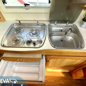 Alde, CD-soitin, Special wheels, Fridge, Cassette WC, Cassette blinds, Roof hatch, Floor heating, Stove, Hot water boiler, Fluid circulation heating, Freezer compartment, Double bed, Sink, Electric heating cartridge, TV-antenni tai lautasantenni, Support legs, Lattialämmitys (nestekierto), liesituuletin, kaasun ulosotto, Asuinosan hyttysovi/verho