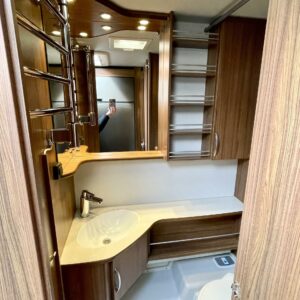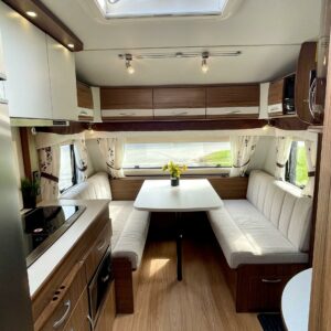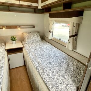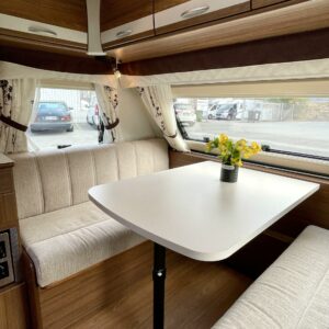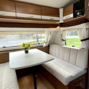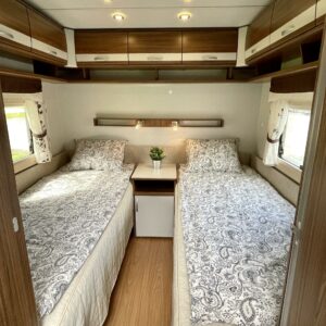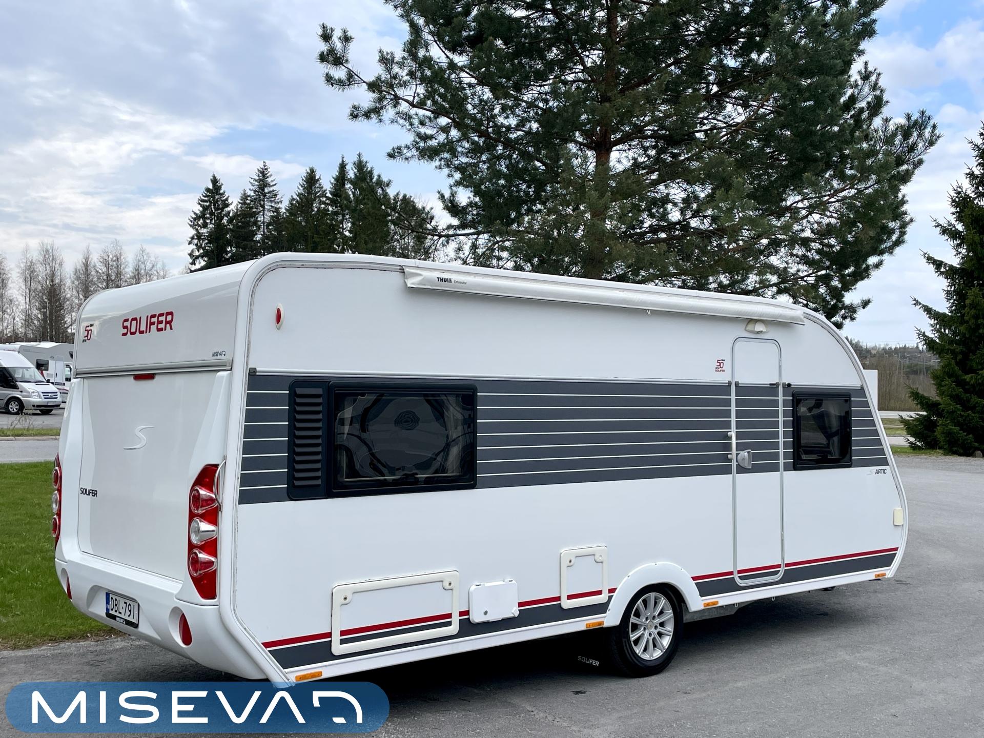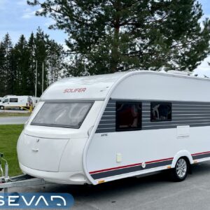 Alde, Separate beds, Fridge, Cassette WC, Cassette blinds, Stove, Hot water boiler, Sun shade, Freezer compartment, Sink, Radio, Shower, Electric heating cartridge, Support legs, Lattialämmitys (sähkö), liesituuletin, Bluetooth