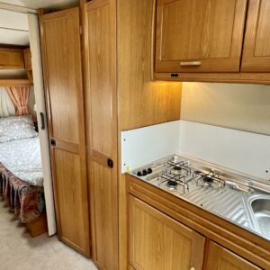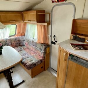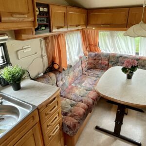 Two tyre sets, Cassette WC, Fridge, Roof hatch, Floor heating, Stove, Hot water boiler, Sink, Freezer compartment, Fluid circulation heating, Radio, Electric heating cartridge, TV-antenni tai lautasantenni, Support legs