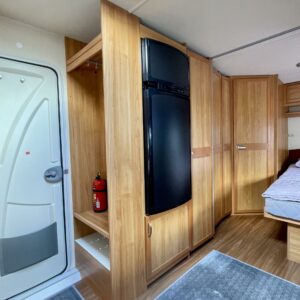 Alde, CD-soitin, Special wheels, Cassette blinds, Cassette WC, Fridge, Roof hatch, Floor heating, Stove, Hot water boiler, Sun shade, Sink, Freezer compartment, Fluid circulation heating, Bicycle rack, Shower, Electric heating cartridge, Support legs