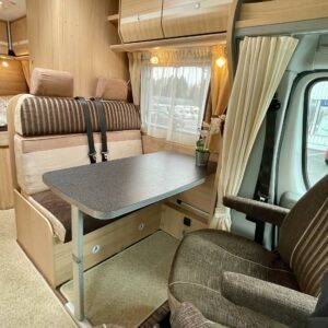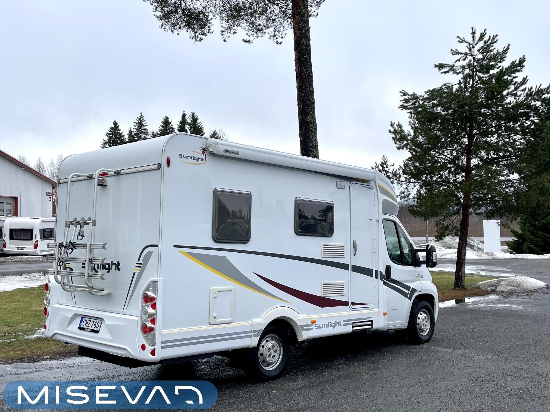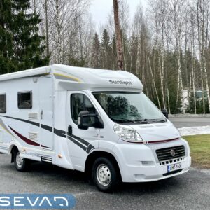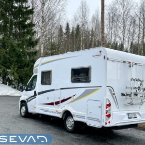 Two tyre sets, Trumatic- ilmapuhalluslämmitys, Electric heating cartridge, Pitkittäinen parivuode, Sink, Freezer compartment, Sun shade, Hot water boiler, Stove, Lattialämmitys- sähköinen, Roof hatch, Cassette blinds, Kasetti- WC, Fridge, Passenger area carpets, Pysäköintikamera, Power steering, Radio, CD-soitin, Power side mirrors, Electric windows, Shower, Vakionopeudensäädin, Bicycle rack, Cab air conditioning, Kesärenkaat, Talvirenkaat(nasta), Asuinosan hyttysovi/verho