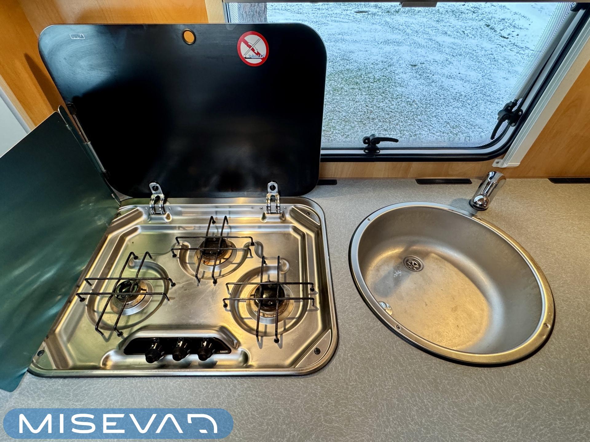 Ilmastointi: Manuaalinen, Two tyre sets, Sun shade, ABS brakes, Airbag, ESC system, Trip computer, Fridge, Cab air conditioning, Cassette WC, Cassette blinds, Roof hatch, Keskuslukitus: Kaukosäätöinen, Central heating, Ignition interlock, Stove, Traction control, Hot water boiler, Sink, Double bed, Freezer compartment, Power steering, Radio, Shower, Electric windows, Vakionopeudensäädin, Turbo, Trumatic, Electric steps, Power side mirrors, TV-antenni tai lautasantenni