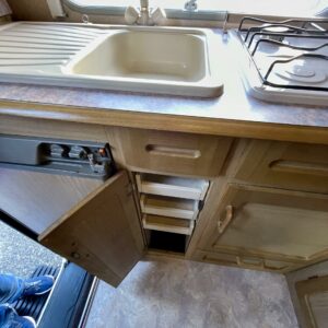 televisioteline, televisio, Kesärenkaat, Truma, Towing hook, Sun shade, Service history, Fridge, Cassette WC, Cassette blinds, Roof railing/ladder, Roof hatch, Stove, Hot water boiler, Power steering, Freezer compartment, Double bed, Sink, Radio, TV-antenni tai lautasantenni