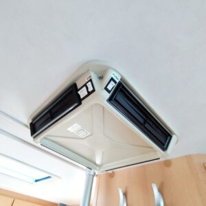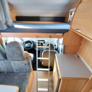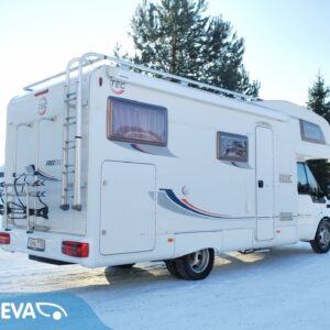 Fridge, Roof hatch, Cassette blinds, Cassette WC, Central heating, Ignition interlock, Stove, Hot water boiler, Sink, Double bed, Freezer compartment, Power steering, Sun shade, Bicycle rack, Radio, Shower, Turbo, Trumatic, Roof railing/ladder