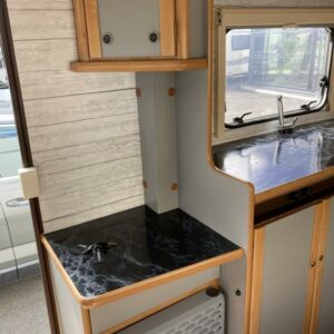 Fridge, Cassette WC, Stove, Hot water boiler, Trumatic, Special wheels, Roof hatch, Central heating, Sink, Radio, Ilmastointi (asuintila), JP-huollot ok