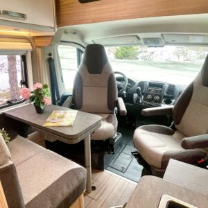 ABS brakes, Airbag, Separate beds, Ilmastointi: Automaattinen, Fridge, Two tyre sets, Cassette WC, Roof hatch, Keskuslukitus: Kaukosäätöinen, Ignition interlock, Stove, Traction control, Power steering, Double bed, Sink, Radio, Shower, Electric windows, Power side mirrors, Electric steps, Trumatic, Vakionopeudensäädin