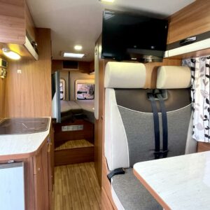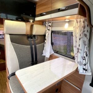 Solar panel, Separate beds, Cab air conditioning, Fridge, Cassette WC, Roof hatch, Keskuslukitus: Kaukosäätöinen, Stove, Sun shade, Power steering, Freezer compartment, Sink, Pysäköintikamera, Bicycle rack, Shower, TV-antenni tai lautasantenni, Trumatic, Vakionopeudensäädin, Towing hook, Webasto/Eber