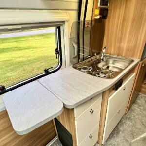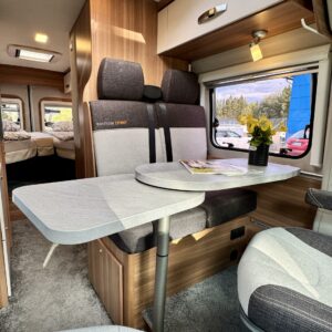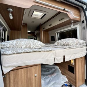Airbag, Trip computer, Trumatic, Fridge, Electric steps, Power side mirrors, Electric windows, Shower, Radio, Bicycle rack, Sink, Cab air conditioning, Power steering, Freezer compartment, Separate beds, Stove, Vakionopeudensäädin, Roof hatch, Cassette blinds, Cassette WC, Special wheels