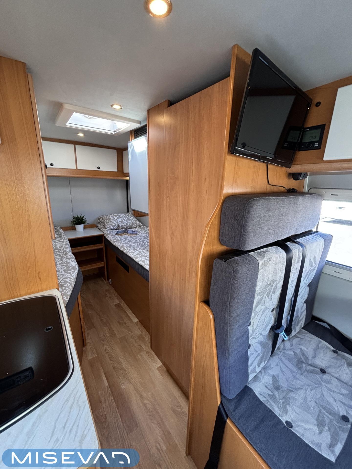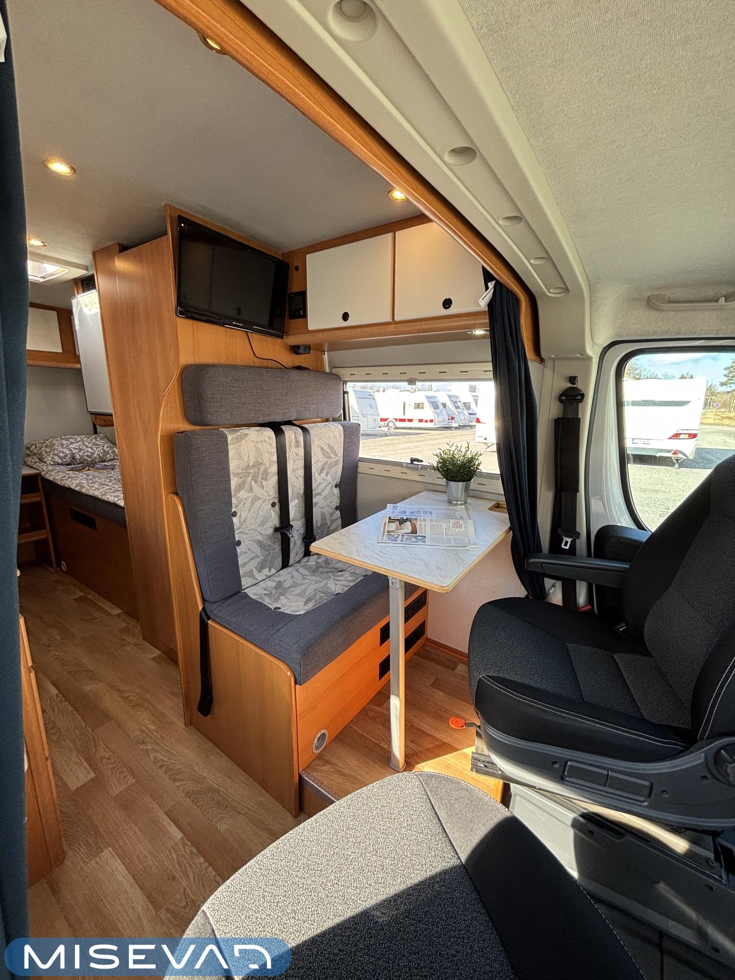 ABS brakes, Airbag, ESC system, Trip computer, Cab air conditioning, Fridge, Two tyre sets, Cassette WC, Cassette blinds, Roof hatch, Keskuslukitus: Kaukosäätöinen, Central heating, Stove, Engine heater, Traction control, Hot water boiler, Sun shade, Navigator, Power steering, Freezer compartment, Double bed, Sink, Pysäköintikamera, Radio, Electric windows, Electric heating cartridge, Power side mirrors, Electric steps, Trumatic, Vakionopeudensäädin, Towing hook, Lattialämmitys (sähkö), JP-huollot ok, 2 (ok) renkaat, Kesärenkaat, Talvirenkaat(nasta), 1 x kevytmet.vanteet, Multimedialaite (sis. p-kamera, navi, Player, bluetooth, handsfree), Asuinosan hyttysovi/verho