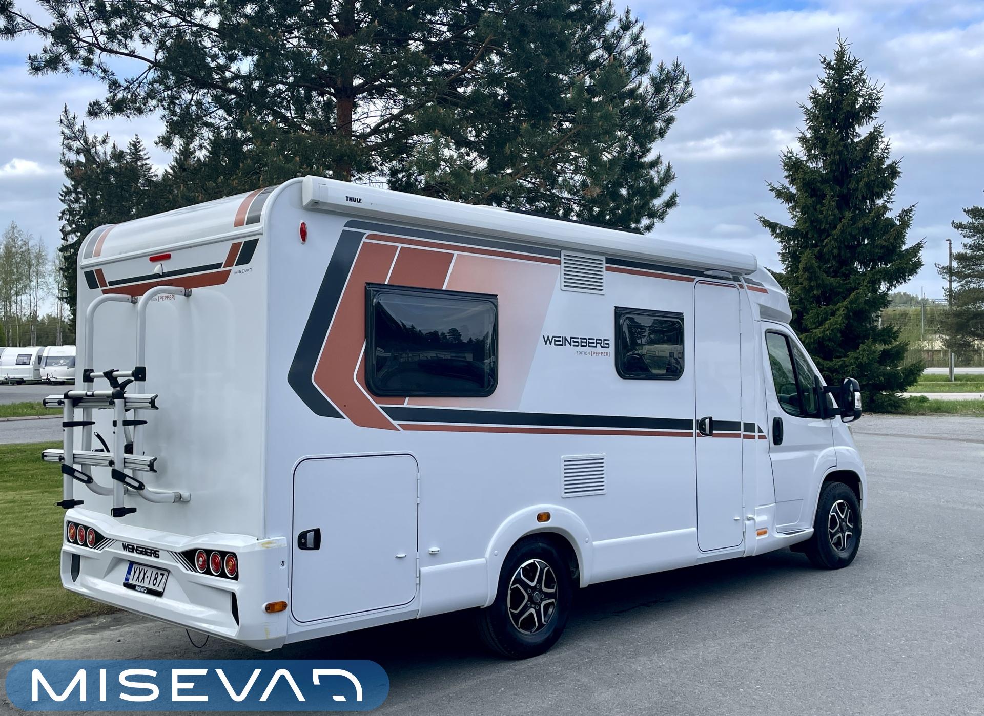 Airbag, ABS brakes, Trip computer, Trumatic, Lattialämmitys (sähkö), Two tyre sets, Cassette WC, Cassette blinds, Roof hatch, Keskuslukitus: Kaukosäätöinen, Passenger area carpets, Stove, Sun shade, Bicycle rack, Radio, Shower, Pysäköintikamera, Vakionopeudensäädin, Sink, Double bed, Freezer compartment, Power steering, Cab air conditioning, Ilmastointi (asuintila), Power side mirrors, Electric windows, Fridge, Hot water boiler, USB, Bluetooth