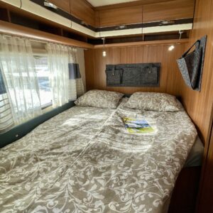 Ilmastointi: Manuaalinen, Two tyre sets, Bicycle rack, Pitkittäinen parivuode, Sun shade, Lattialämmitys- sähköinen, Laskuvuode, ABS brakes, Airbag, Trip computer, Cab air conditioning, Fridge, Cassette WC, Cassette blinds, Roof hatch, Engine heater, Stove, Passenger area carpets, Floor heating, Ignition interlock, Central heating, Keskuslukitus: Kaukosäätöinen, Traction control, Hot water boiler, Power steering, Freezer compartment, Double bed, Shower, Radio, Electric windows, Electric heating cartridge, Power side mirrors, Trumatic, Turbo, Vakionopeudensäädin