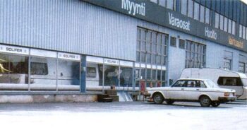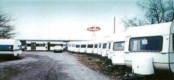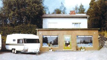 Helsinki Caravanin ensimmäinen toimipiste aloitti Verkkosaaressa vuonna 1976. Myyntikonttorina oli taustalla näkyvä suurikokoinen asuntovaunu.