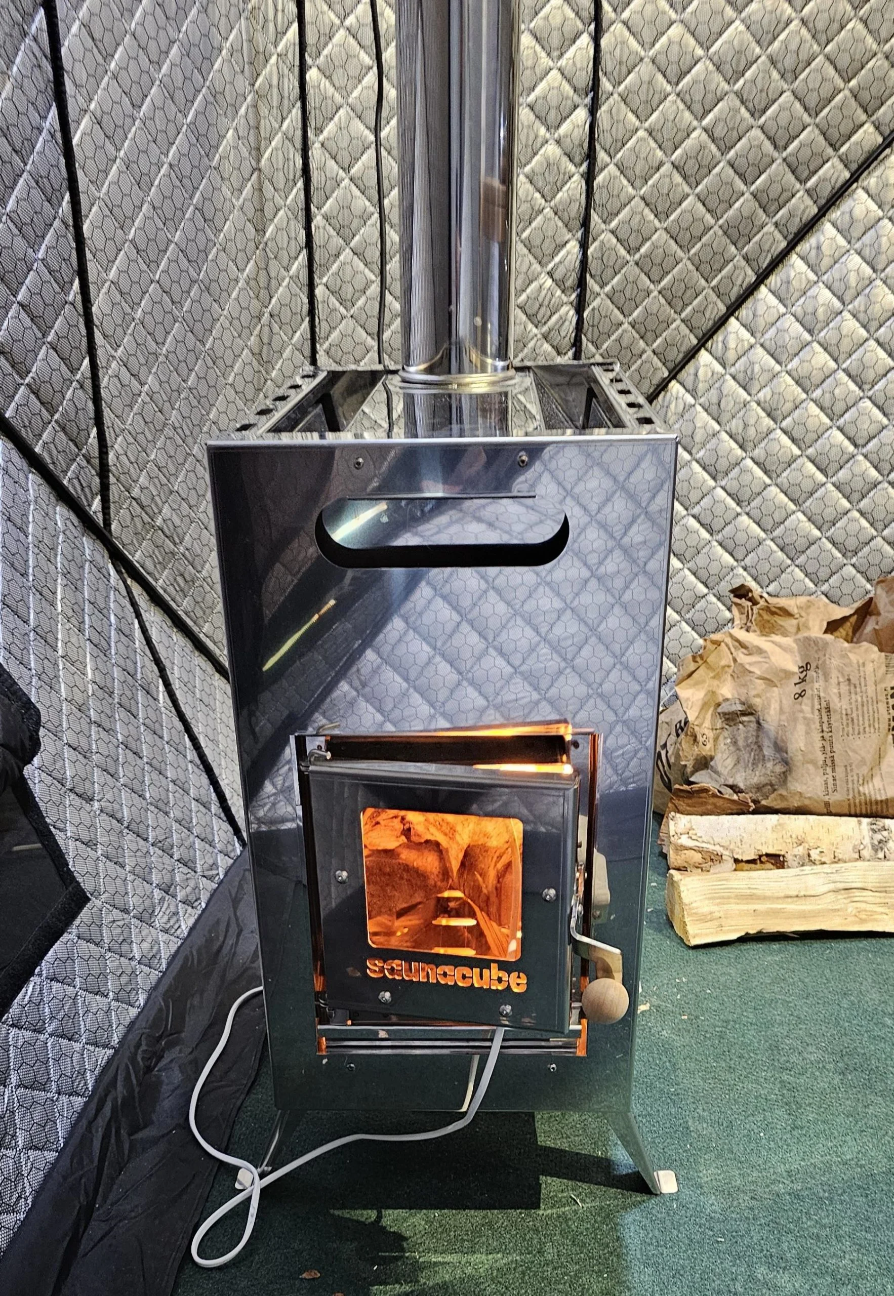 Saunacubessa saat loistavat löylyt paikasta ja säästä riippumatta. Teltta ja kiuas on helppo ja nopea kasata ja pakata. Ruostumattomasta teräksestä valmistettu kiuas on helppo käytön jälkeen pestä vedellä ja nostaa puhtaana kassiin. Kiukaaseen saatavissa aidon saunatunnelman viimeistelevä vuolukivinen kiuaskivi 49€ hintaan.