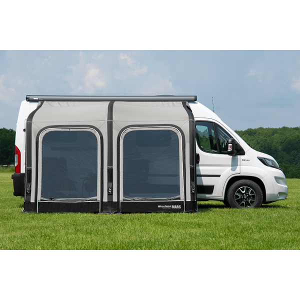 Optimaalinen tilankäyttö, erinomainen toiminnallisuus ja harkittu muotoilu ovat tunnusomaisia piirteitä Van-malliin mukautetulle ilmateltalle Mars Van. Ilmateltan syvyys on 250 cm. Valmistettu HydroTech® Ripstop-materiaalista, jossa on pehmeää ”soft touch” -ilmettä ja tuntua antava polyuretaanipinnoite. Sivuseinissä on hyttysverkolllinen ovi ja ikkuna. Etupuolella on kaksi suurta irrotettavaa ikkunaa. Maamitat: 330 x 250 cm.
