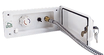 Suihkun ulostulo ulkoiseen asennukseen auton tai vaunun ulkoseinään hanalla ja suihkulla. Pumppu käynnistetään omalla kytkimellä. Sisältää CHARISMA-suihku 2-metrisellä letkulla ja pikaliitännällä. Veden lämpötila portaattomasti säädettävissä.
