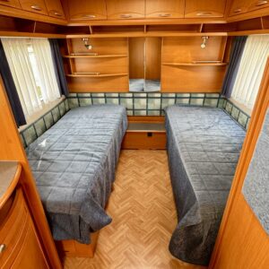 Kassettgardiner, Kassettoalett, Kylskåp, Taklucka, Spis, Varmvattenberedare, Markis, Tvättho, Frysfack, Stödben, Alde, Separata sängar